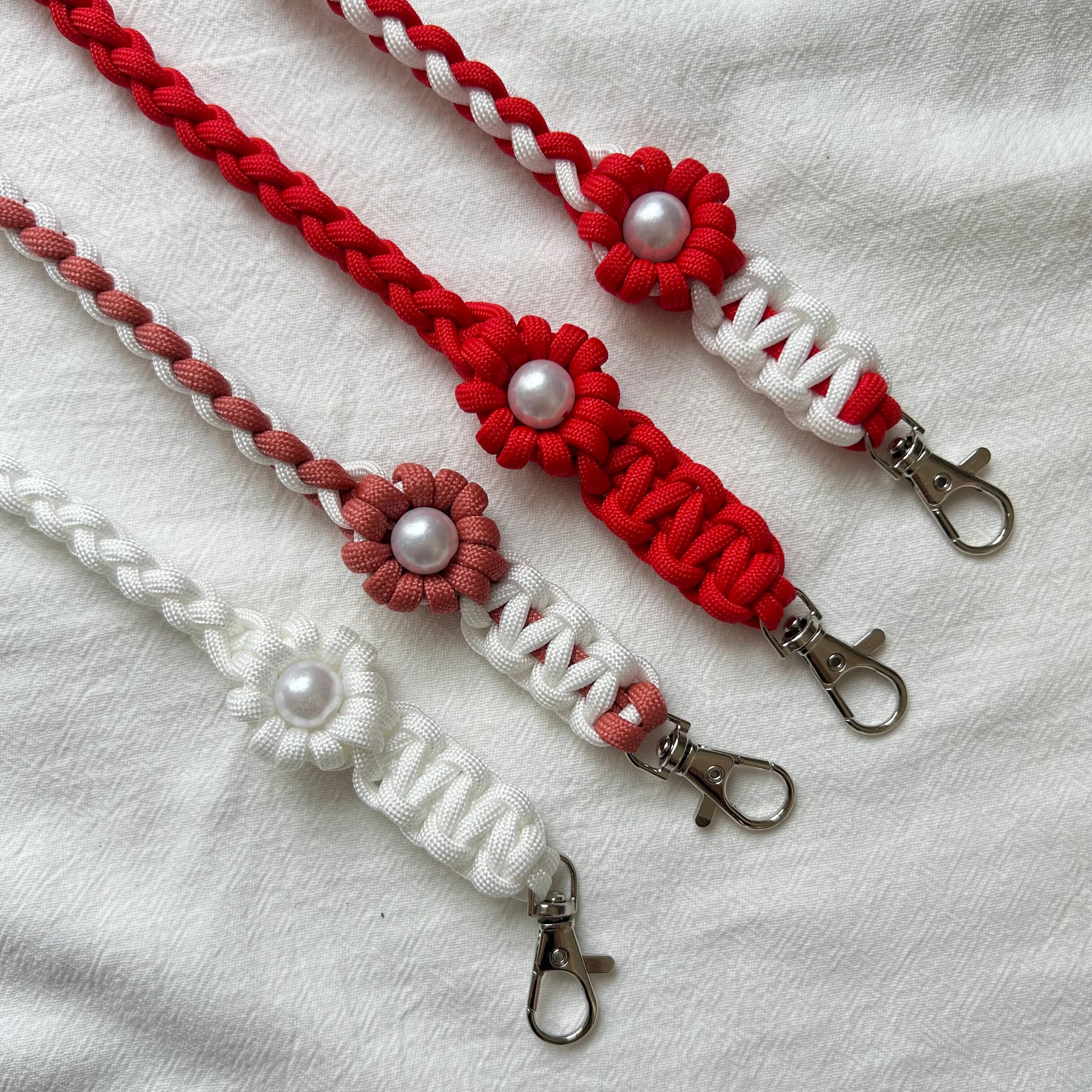 ・使用しているワックスコード、パラコードは焼き止め処理を行っている為、焼き跡が残っております。できる限り目立たないようにしておりますが、マクラメ編みの特性としてご理解いただきますよう、お願いいたします。