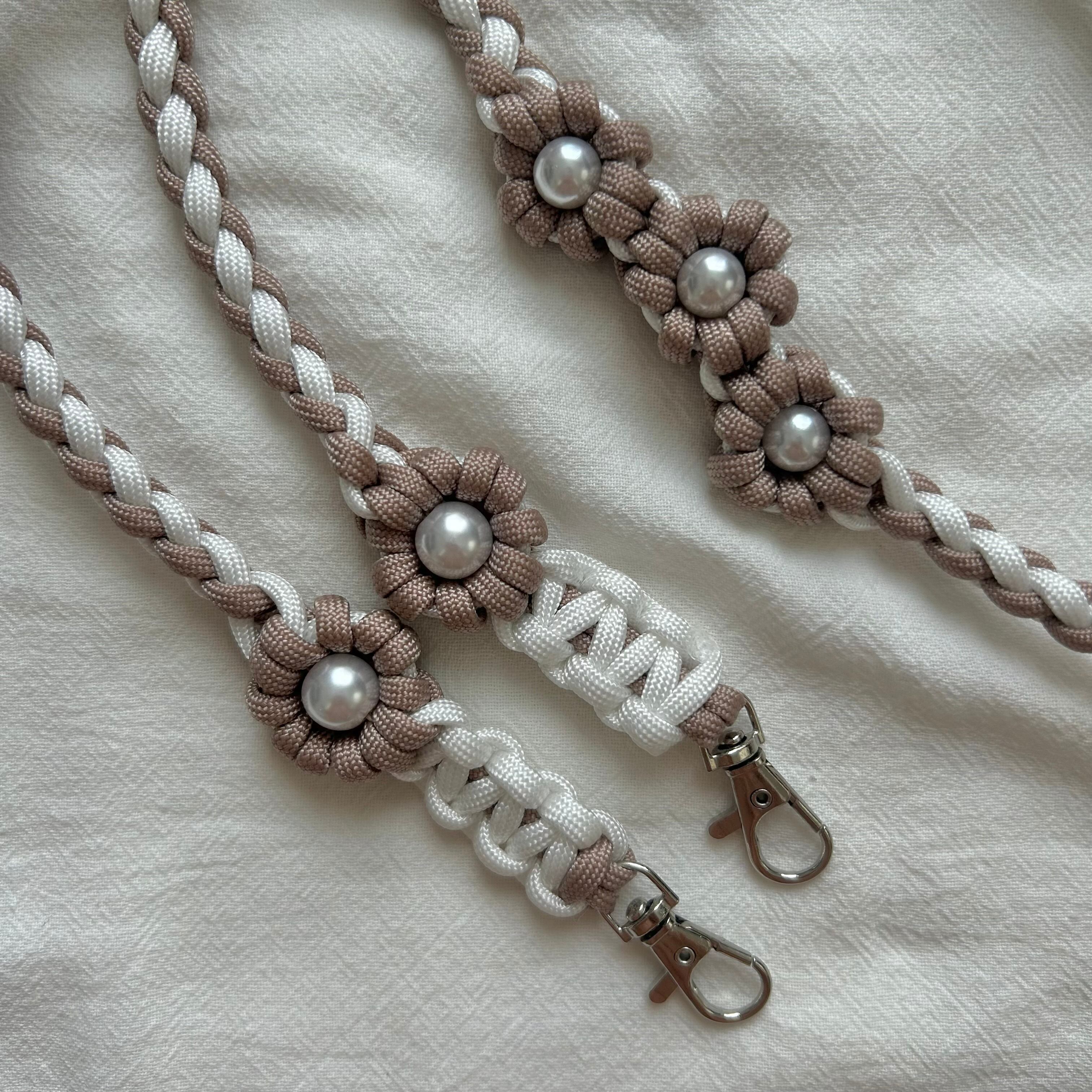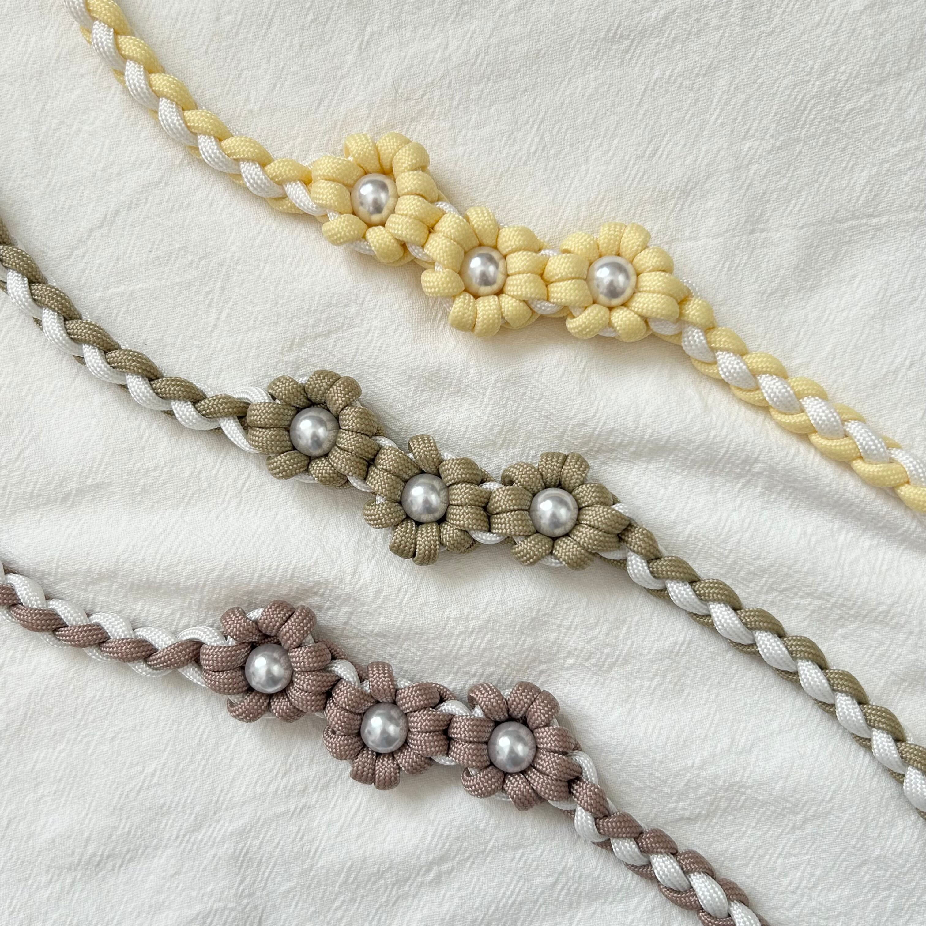 ・使用しているワックスコード、パラコードは焼き止め処理を行っている為、焼き跡が残っております。できる限り目立たないようにしておりますが、マクラメ編みの特性としてご理解いただきますよう、お願いいたします。