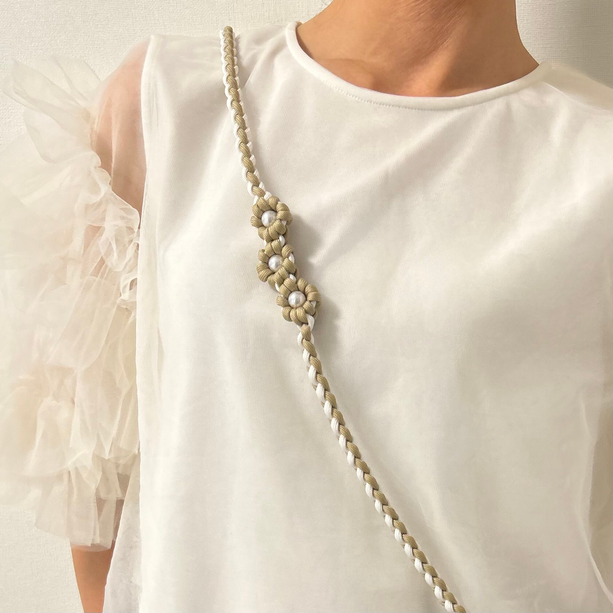 胸元と腰(スマホの手元にくる部分)あたりにパールを使ったお花のデザインを入れました。