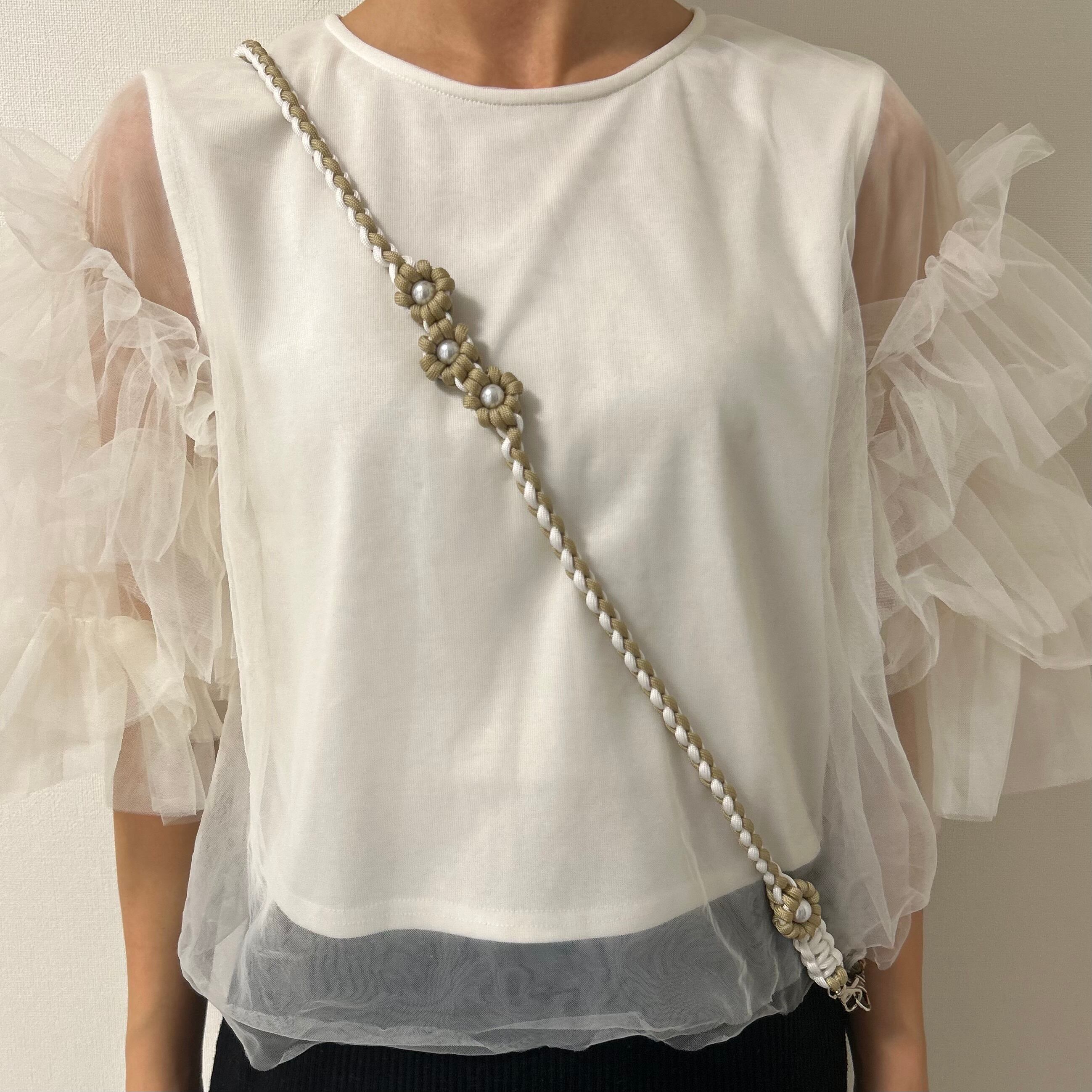 ・使用しているワックスコード、パラコードは焼き止め処理を行っている為、焼き跡が残っております。できる限り目立たないようにしておりますが、マクラメ編みの特性としてご理解いただきますよう、お願いいたします。