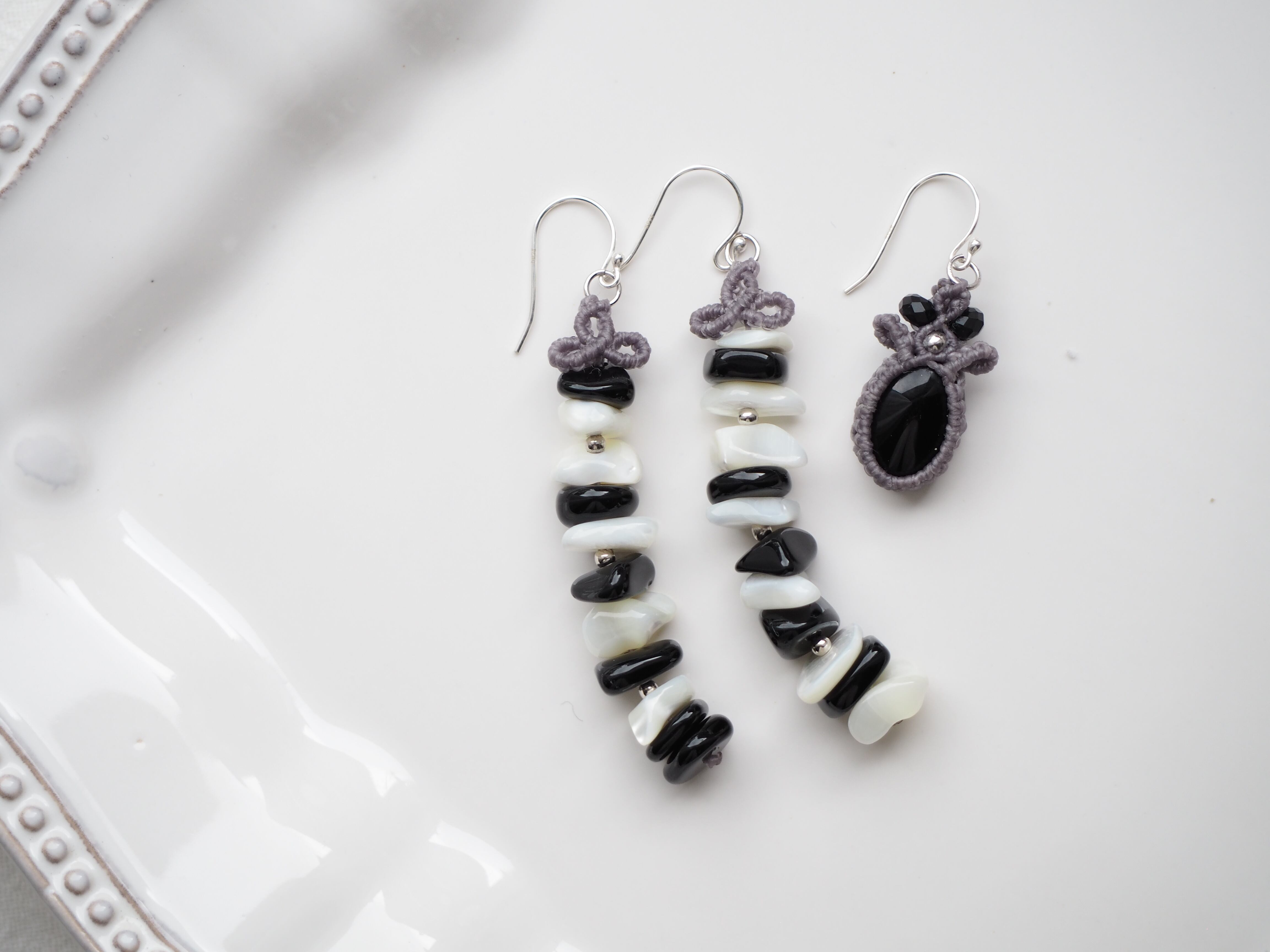 オニキス マクラメ編みピアス 【Iris】シリーズ