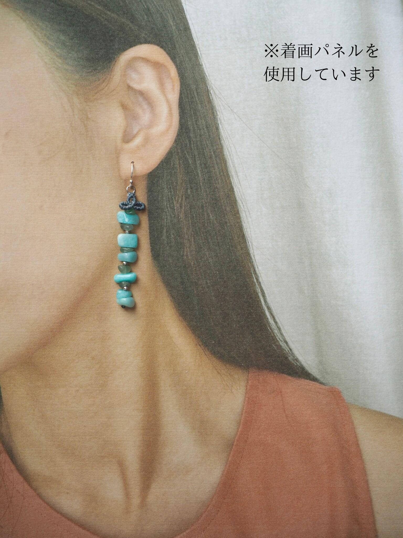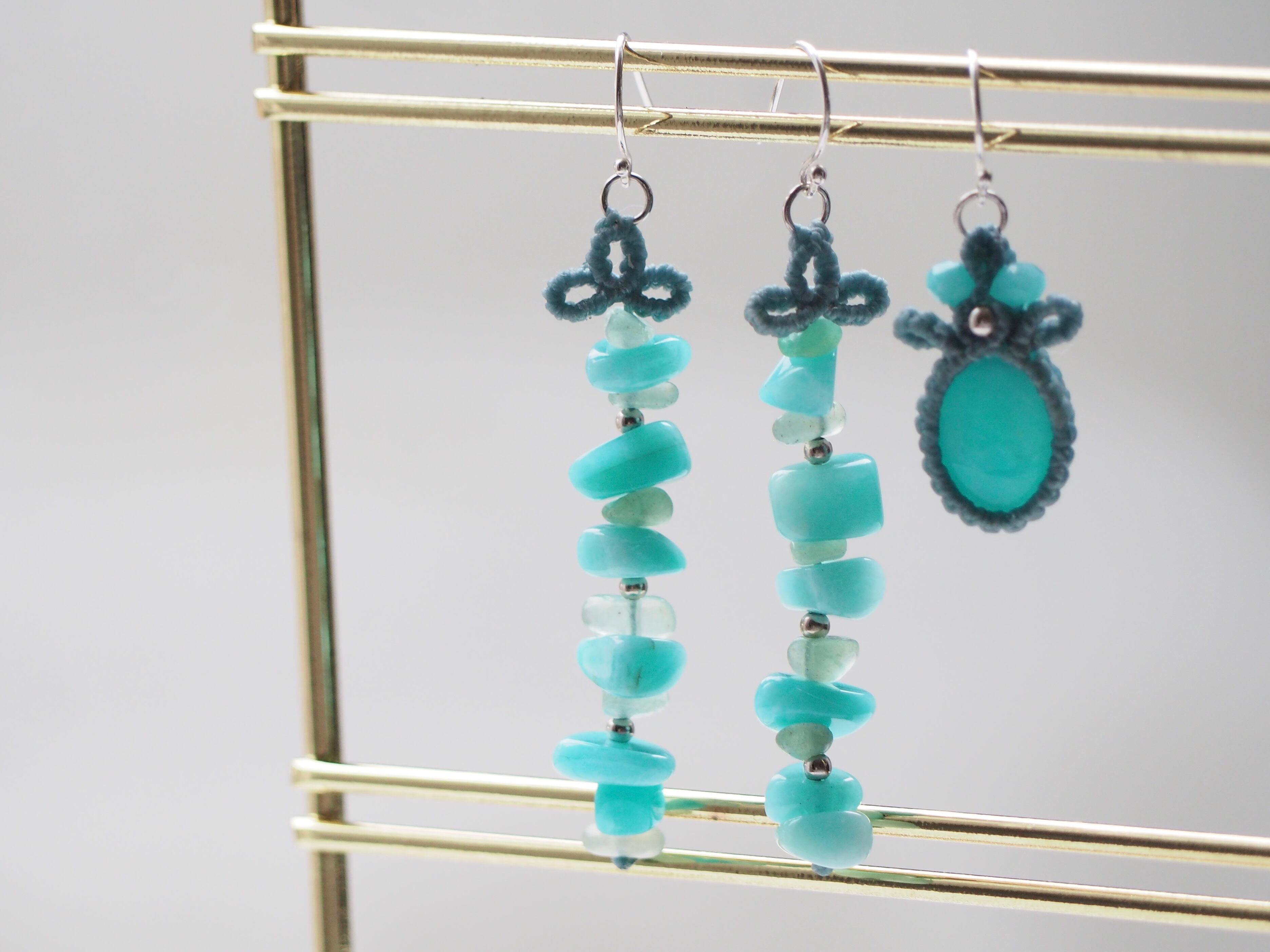 アマゾナイト マクラメ編みピアス 【Iris】シリーズ