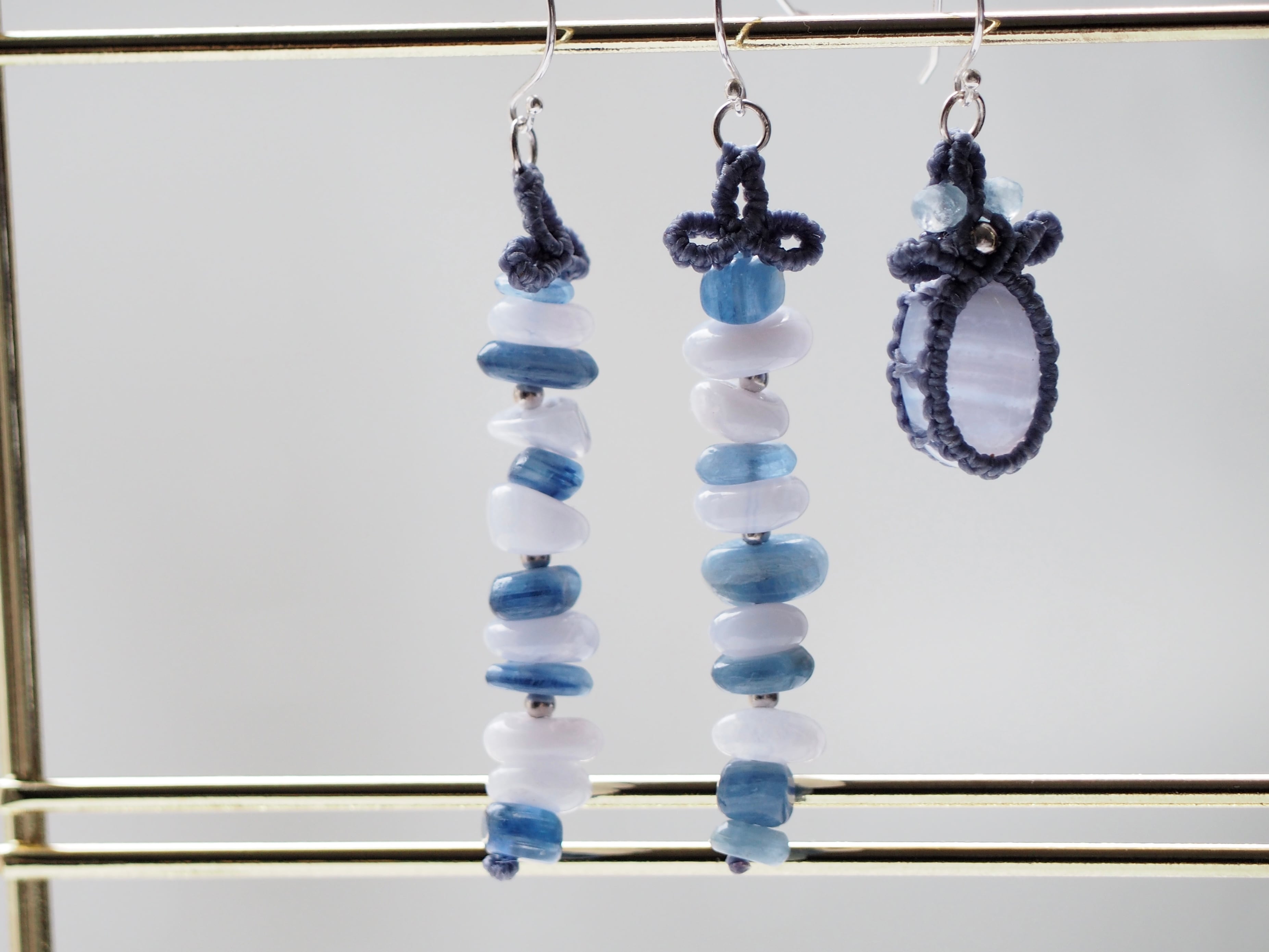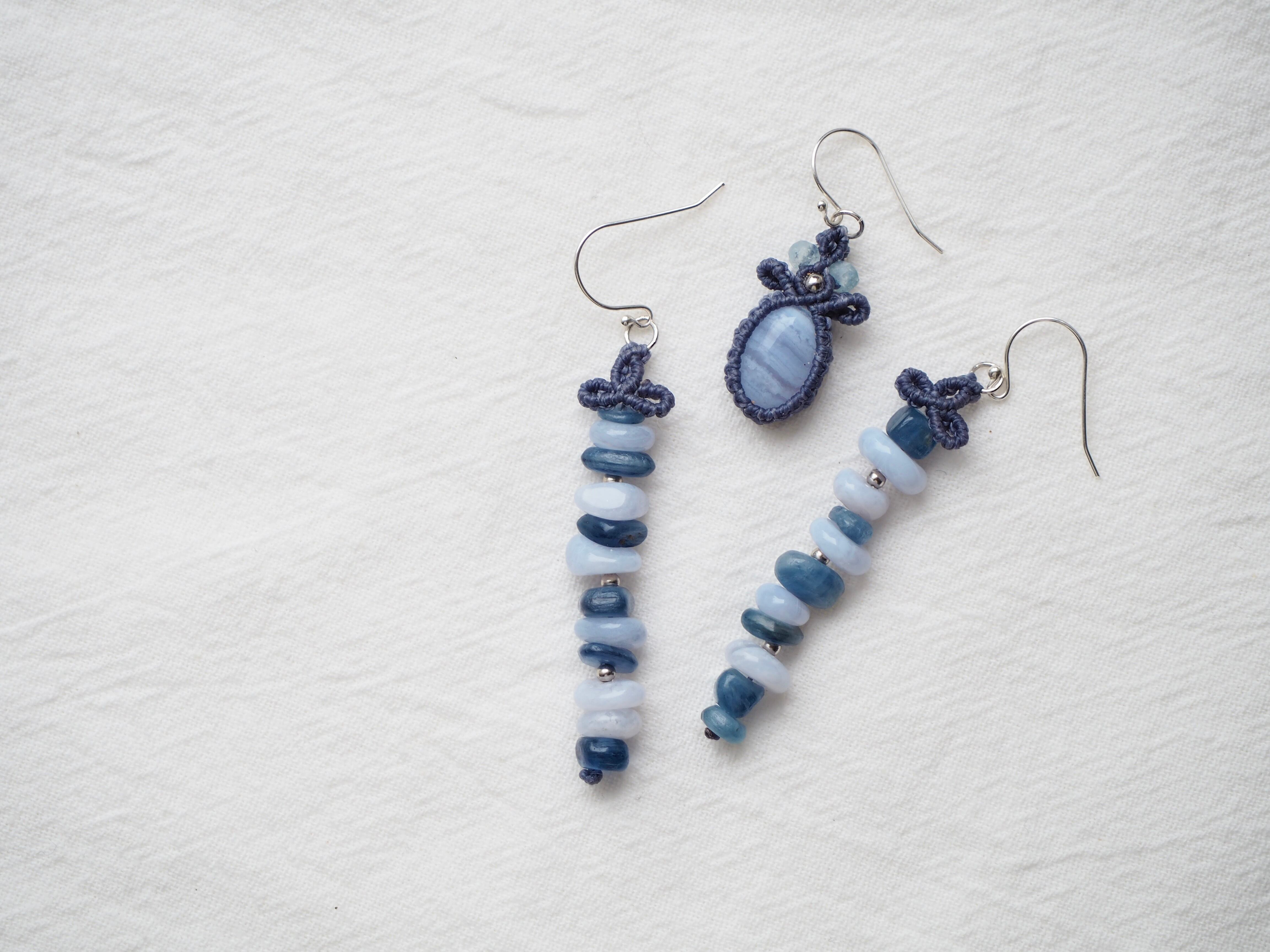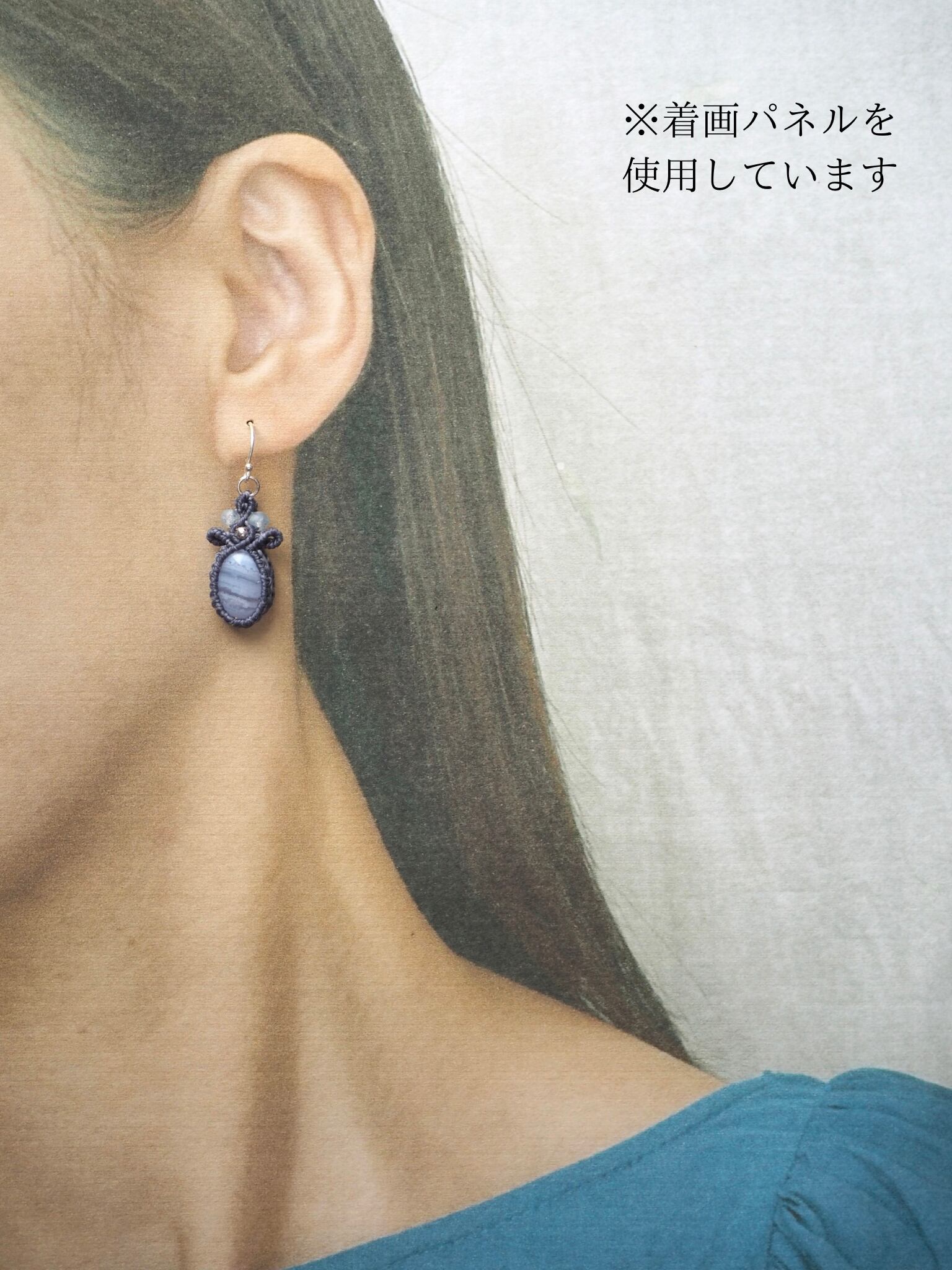 ブルーレースアゲート マクラメ編みピアス 【Iris】シリーズ
