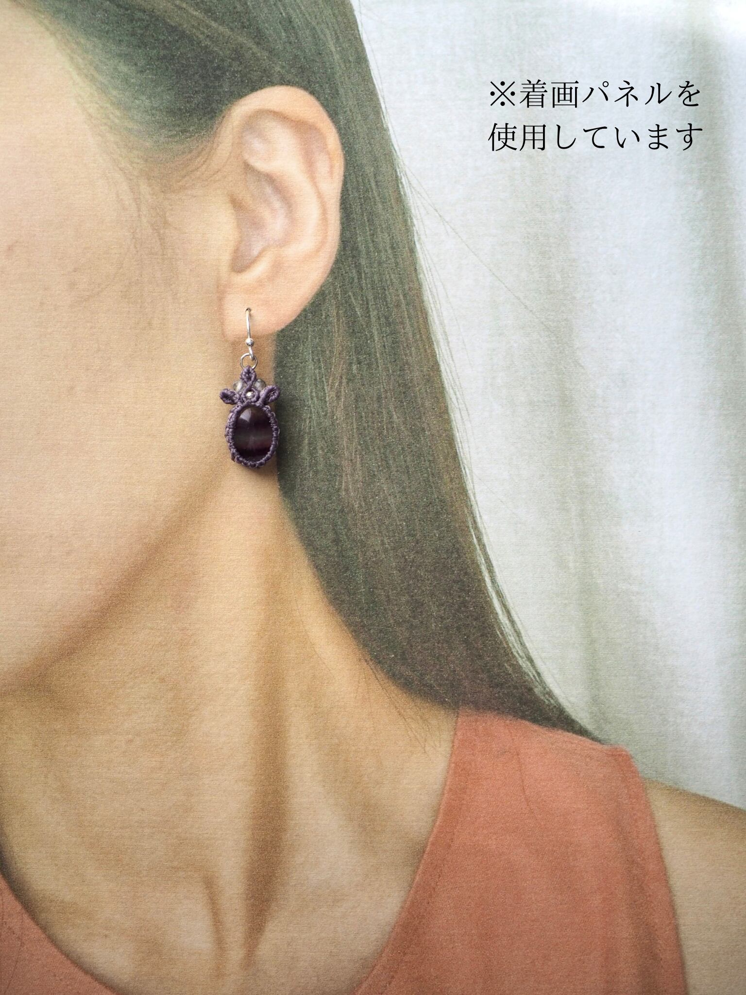 ルースを編んだピアス1点と、