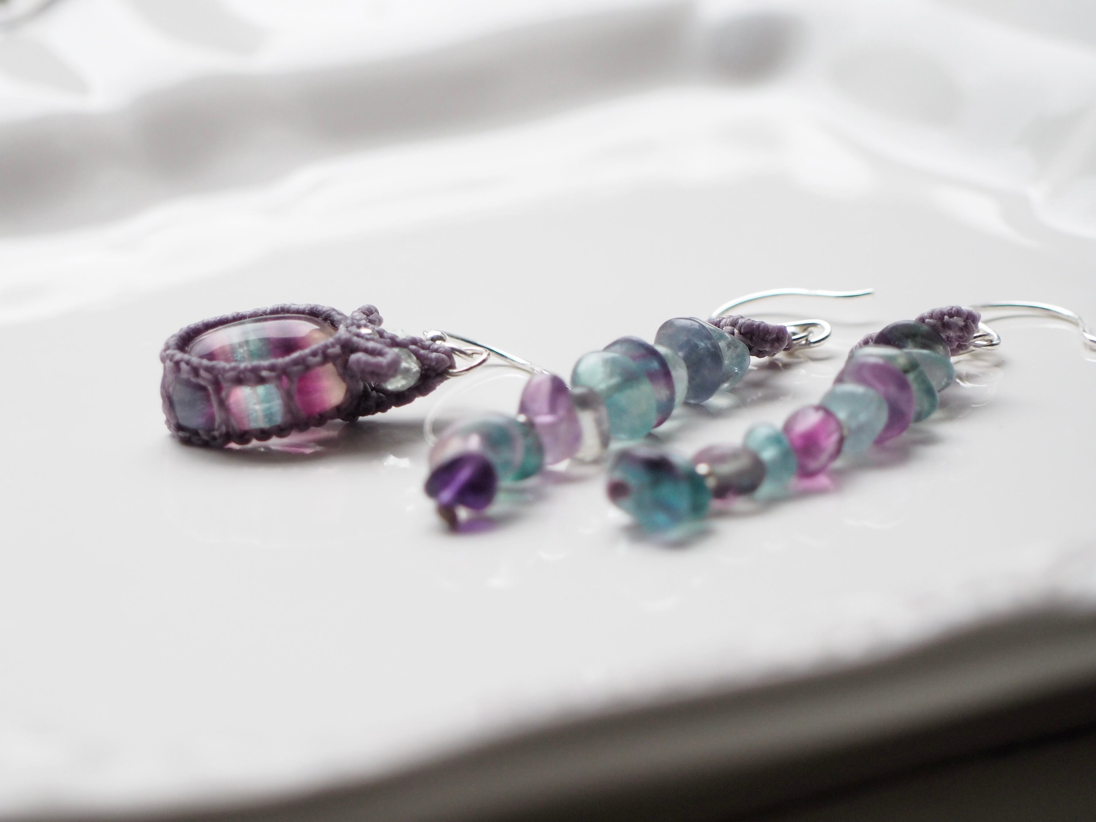 フローライト マクラメ編みピアス 【Iris】シリーズ