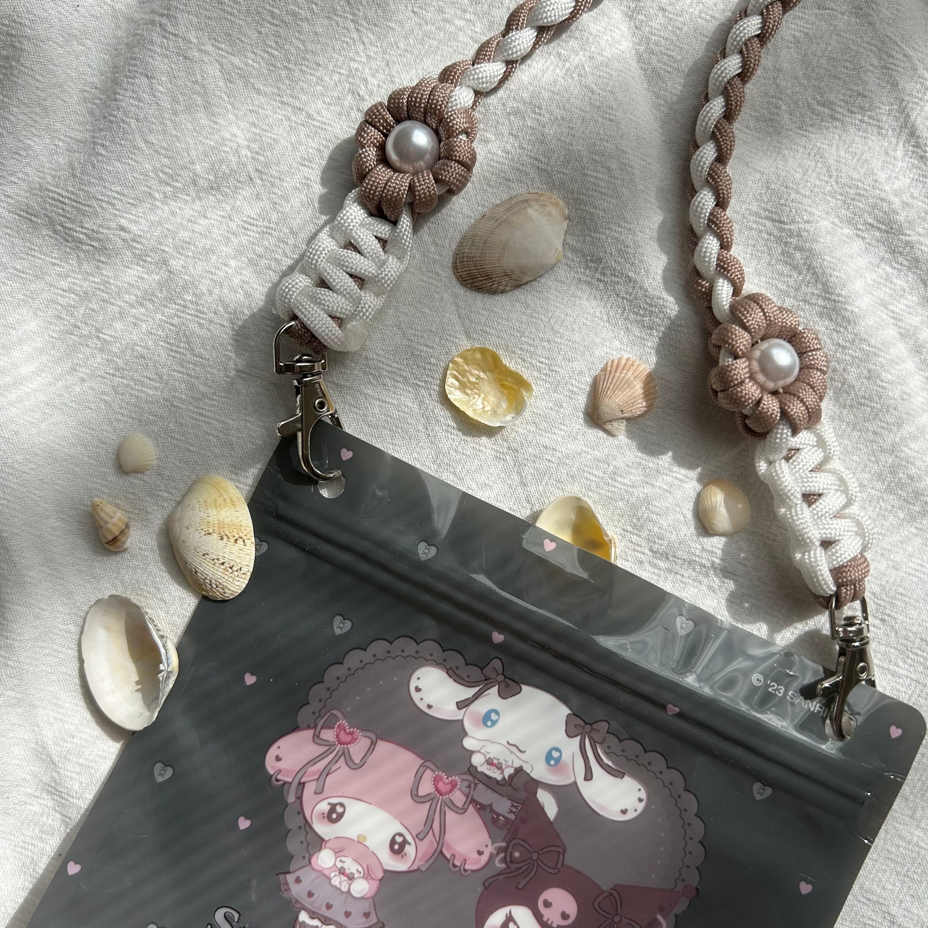 ・使用しているワックスコード、パラコードは焼き止め処理を行っている為、焼き跡が残っております。できる限り目立たないようにしておりますが、マクラメ編みの特性としてご理解いただきますよう、お願いいたします。