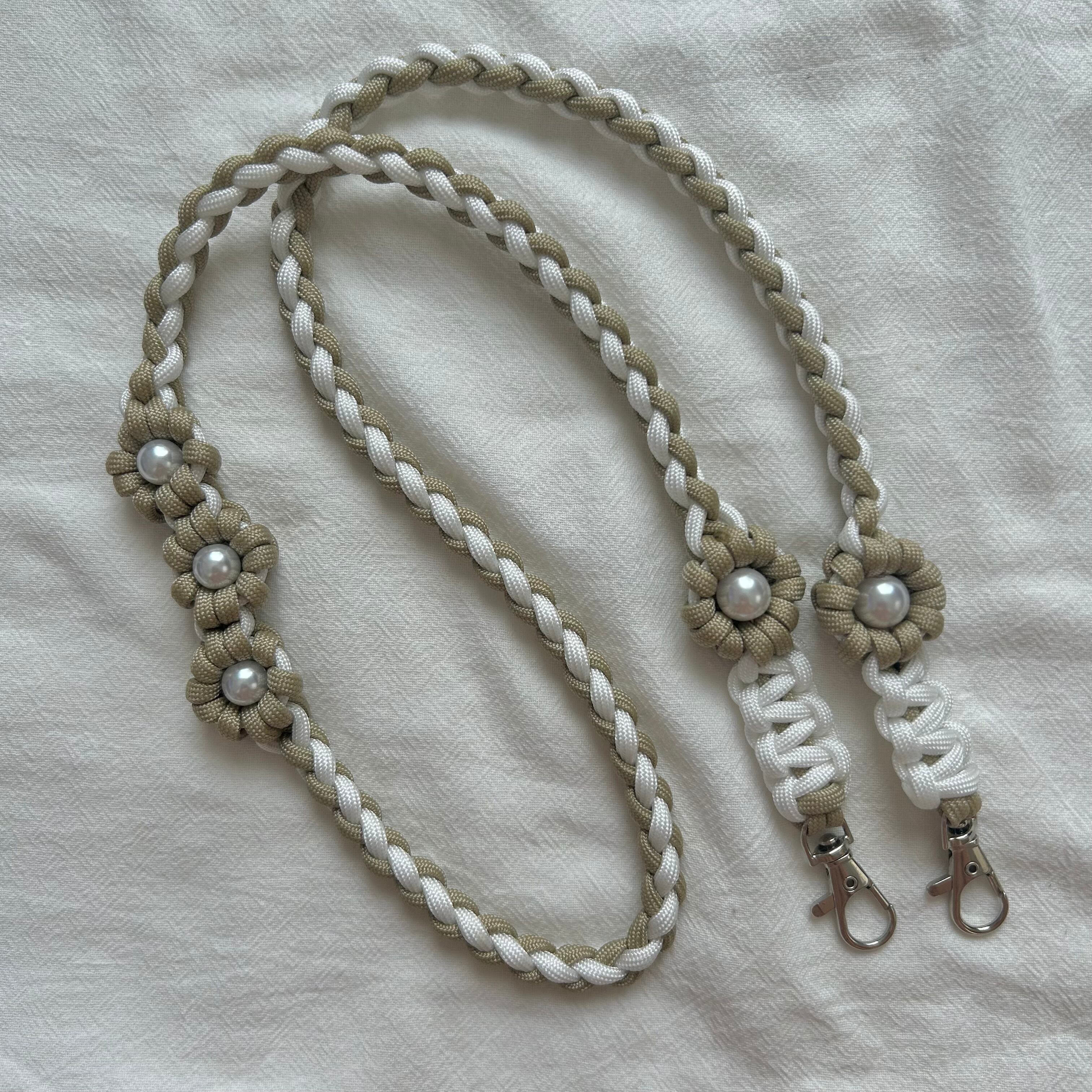 ・使用しているワックスコード、パラコードは焼き止め処理を行っている為、焼き跡が残っております。できる限り目立たないようにしておりますが、マクラメ編みの特性としてご理解いただきますよう、お願いいたします。
