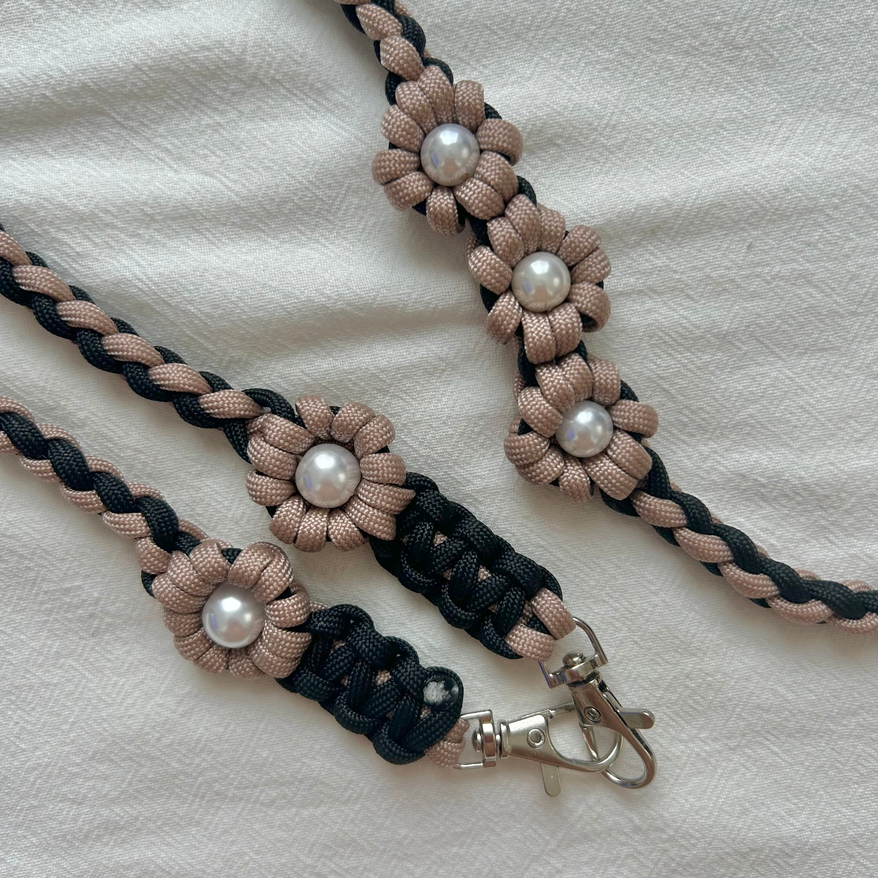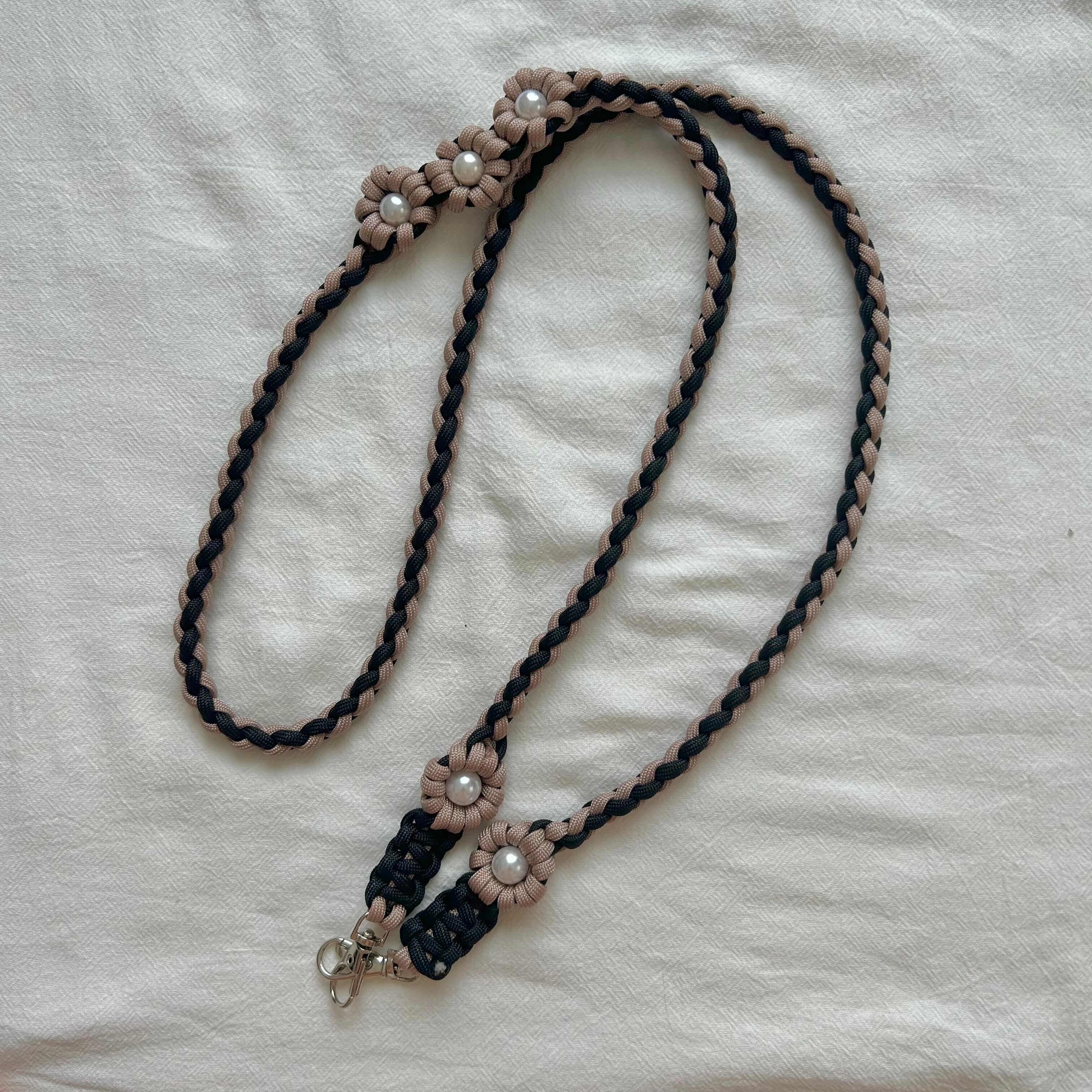 ・使用しているワックスコード、パラコードは焼き止め処理を行っている為、焼き跡が残っております。できる限り目立たないようにしておりますが、マクラメ編みの特性としてご理解いただきますよう、お願いいたします。