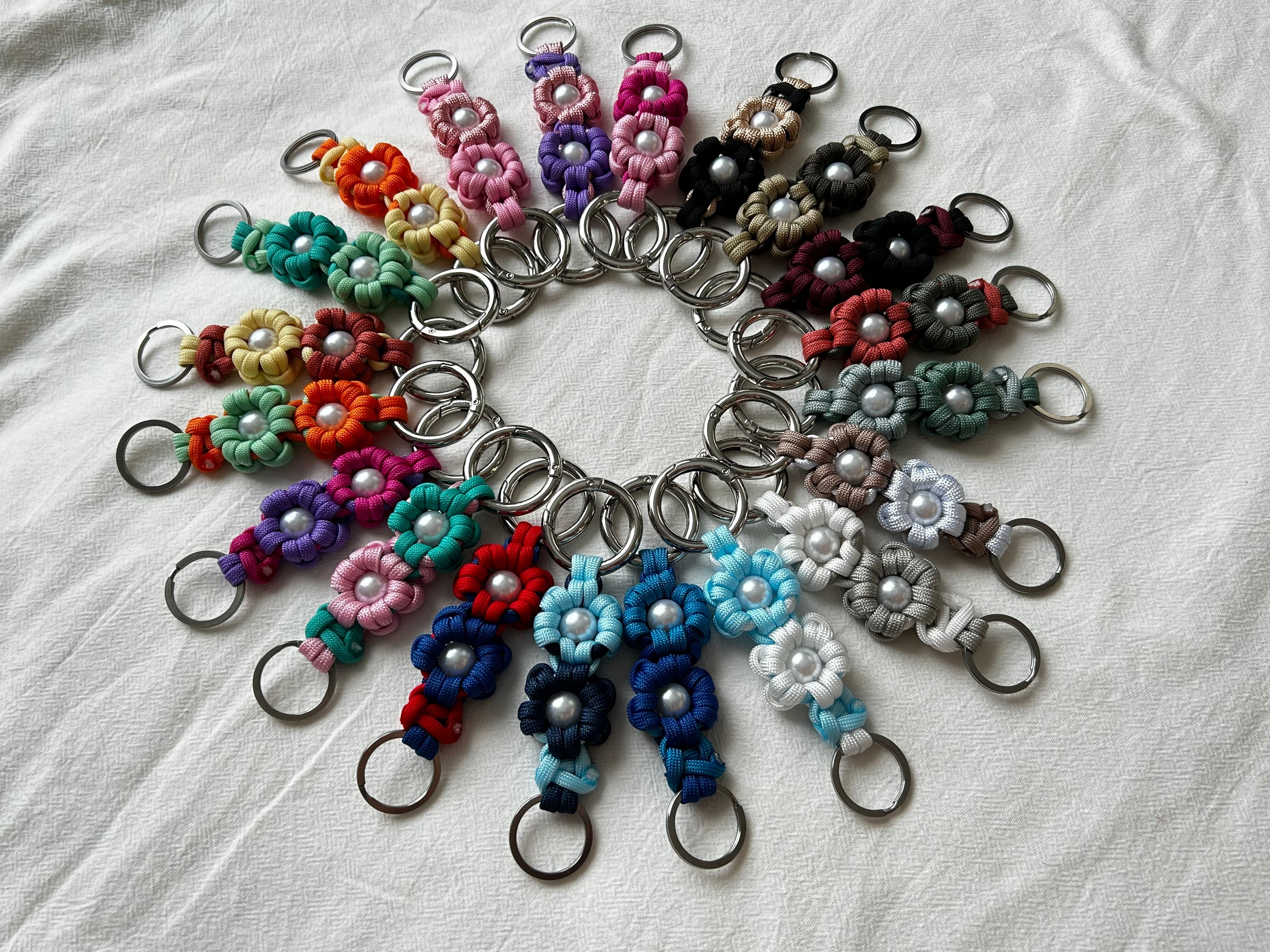 ・使用しているワックスコード、パラコードは焼き止め処理を行っている為、焼き跡が残っております。できる限り目立たないようにしておりますが、マクラメ編みの特性としてご理解いただきますよう、お願いいたします。