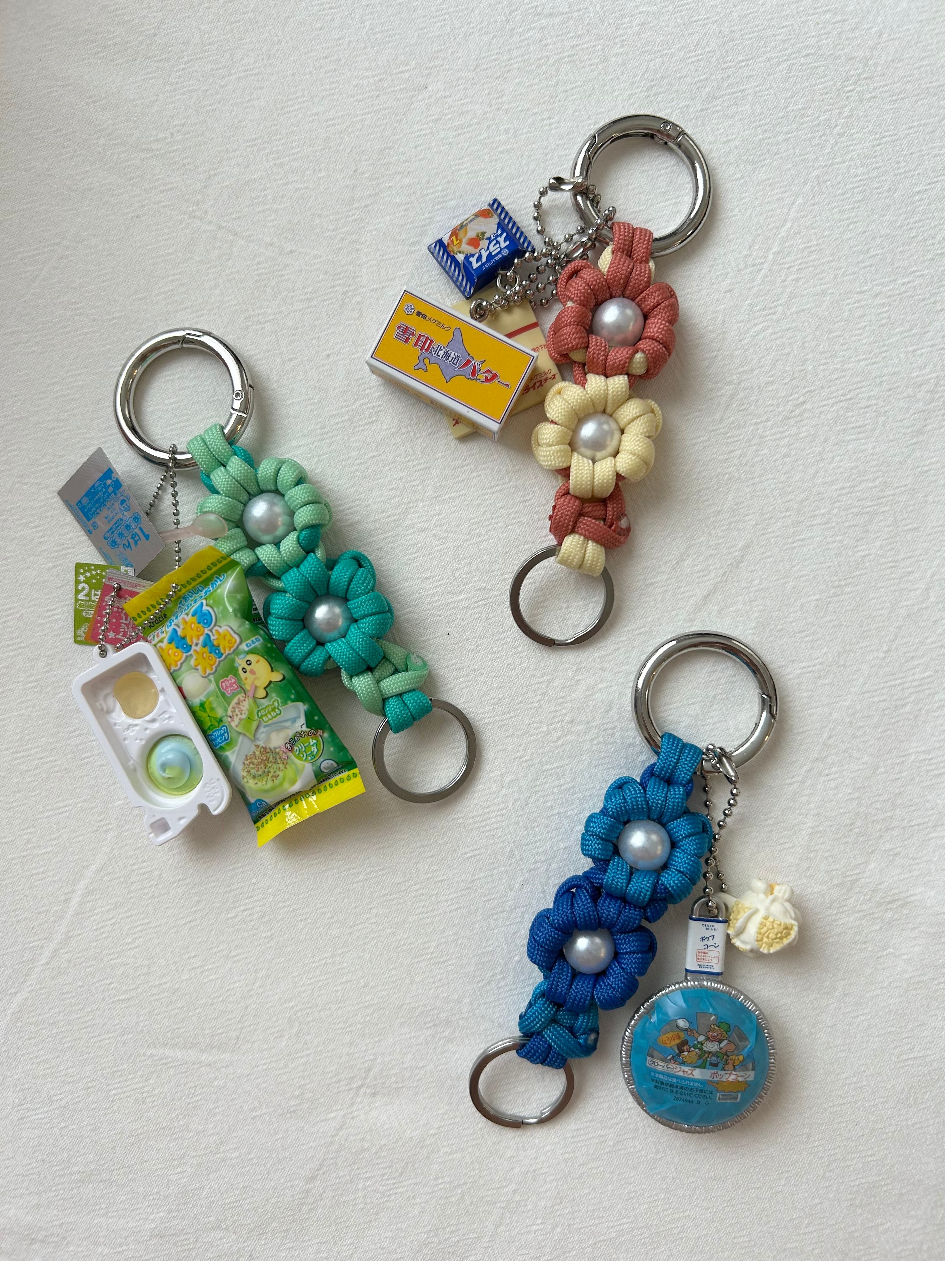 ・使用しているワックスコード、パラコードは焼き止め処理を行っている為、焼き跡が残っております。できる限り目立たないようにしておりますが、マクラメ編みの特性としてご理解いただきますよう、お願いいたします。