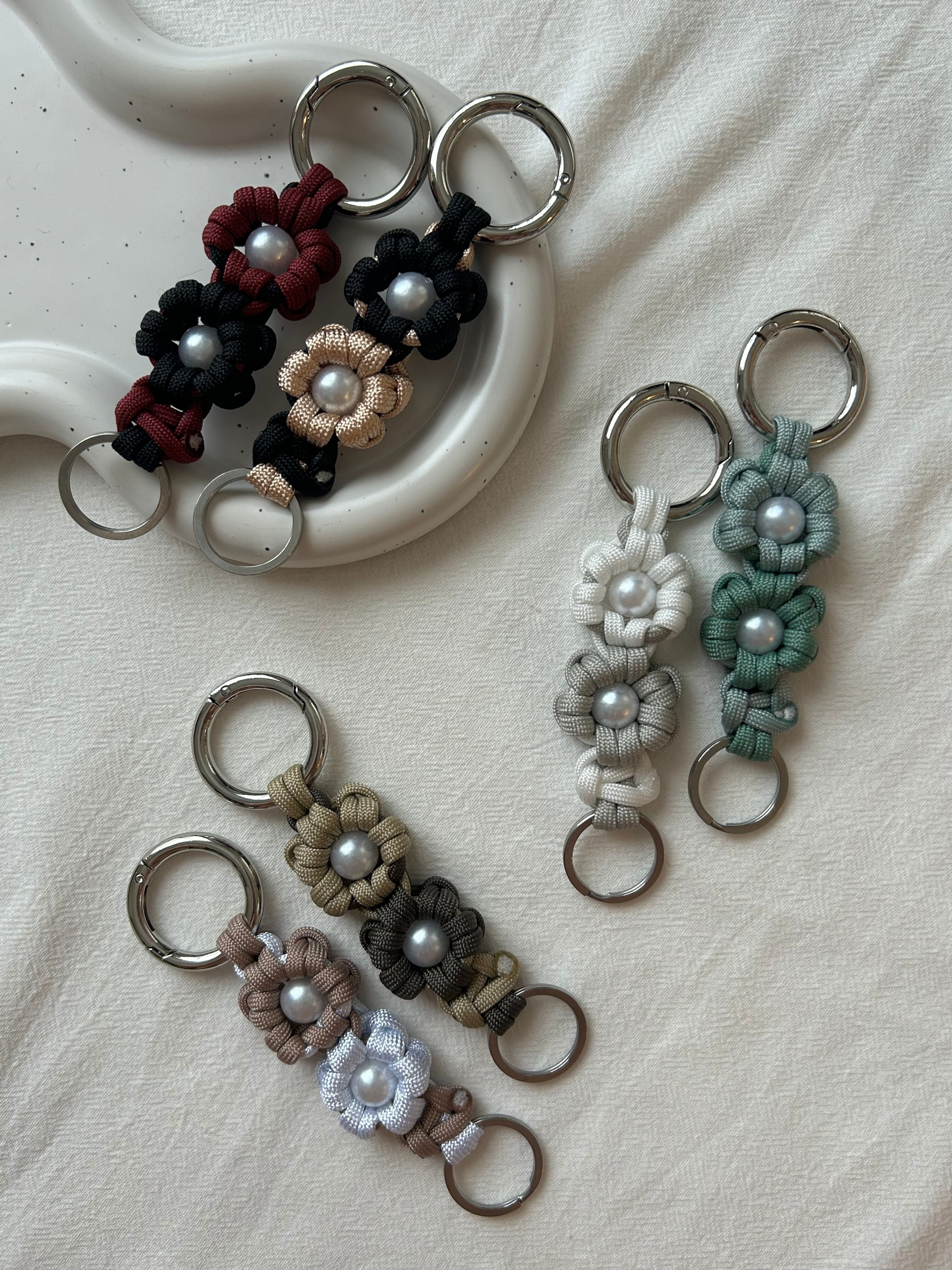 ・使用しているワックスコード、パラコードは焼き止め処理を行っている為、焼き跡が残っております。できる限り目立たないようにしておりますが、マクラメ編みの特性としてご理解いただきますよう、お願いいたします。