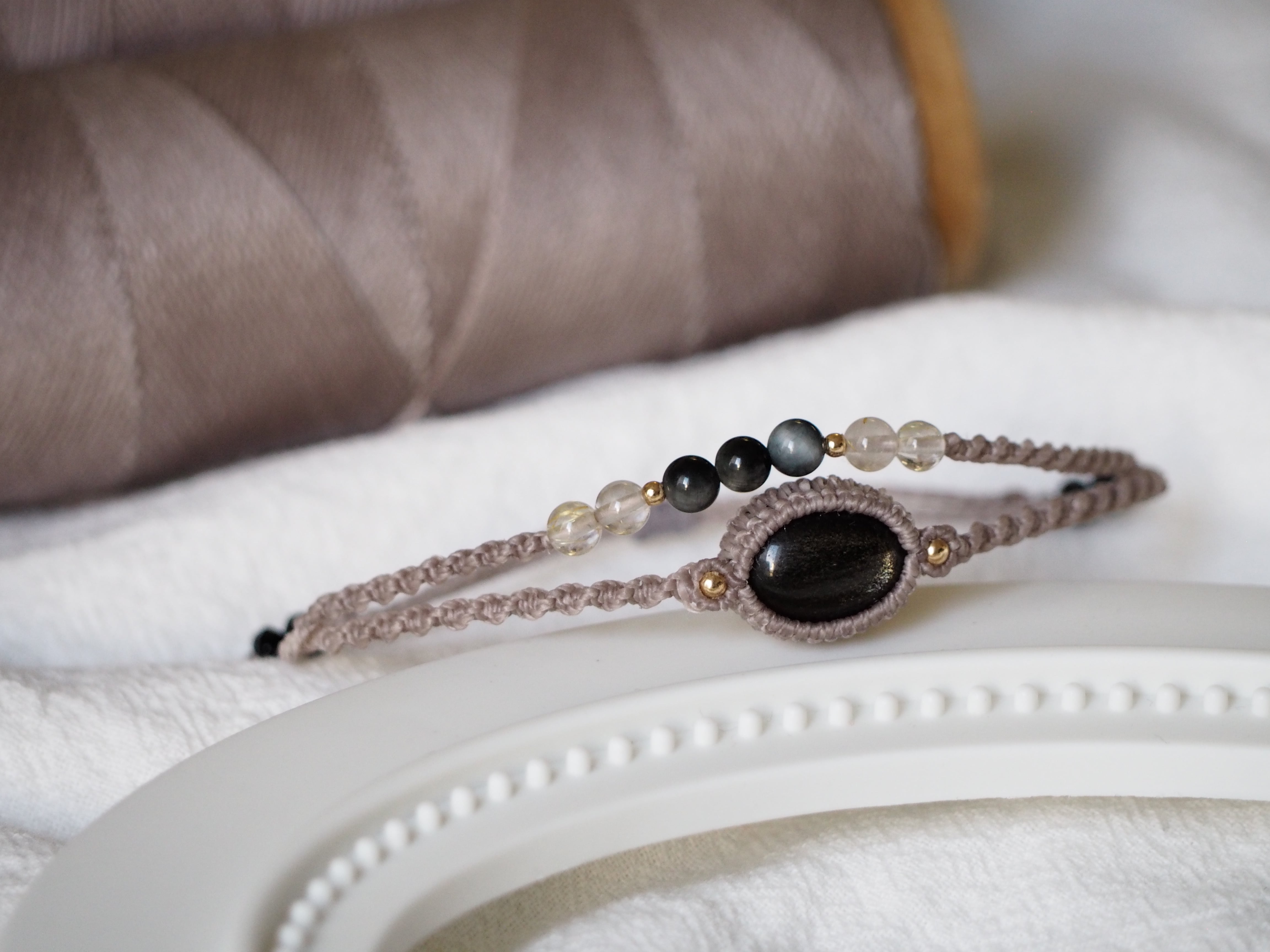 ゴールデンオブシディアン マクラメ編みブレスレット 【Stella】シリーズ