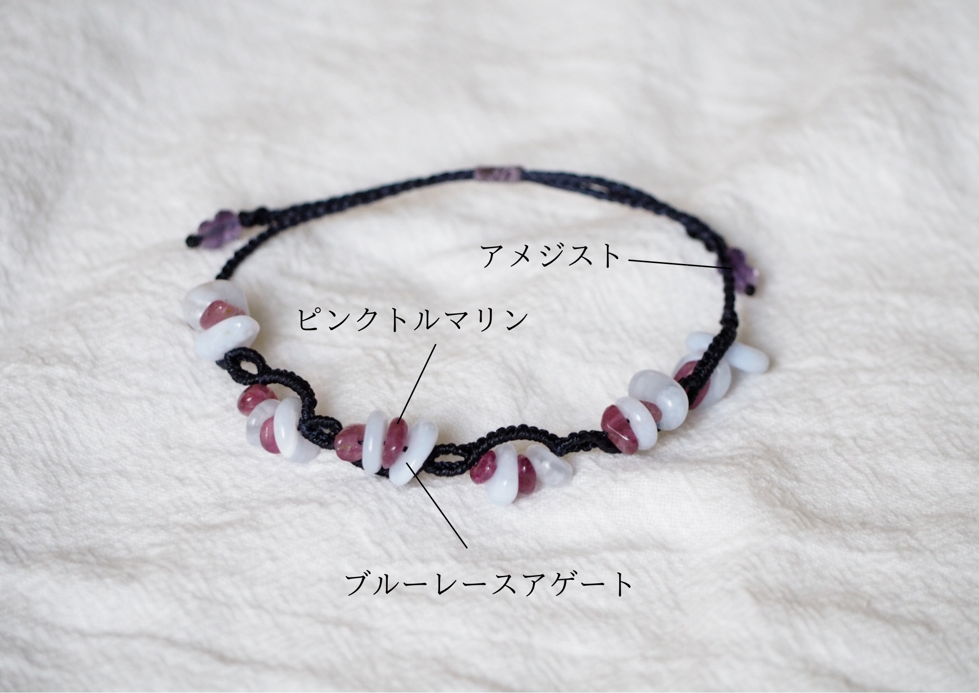 ブルーレースアゲート ピンクトルマリン マクラメ編みブレスレット 【Mare】シリーズ
