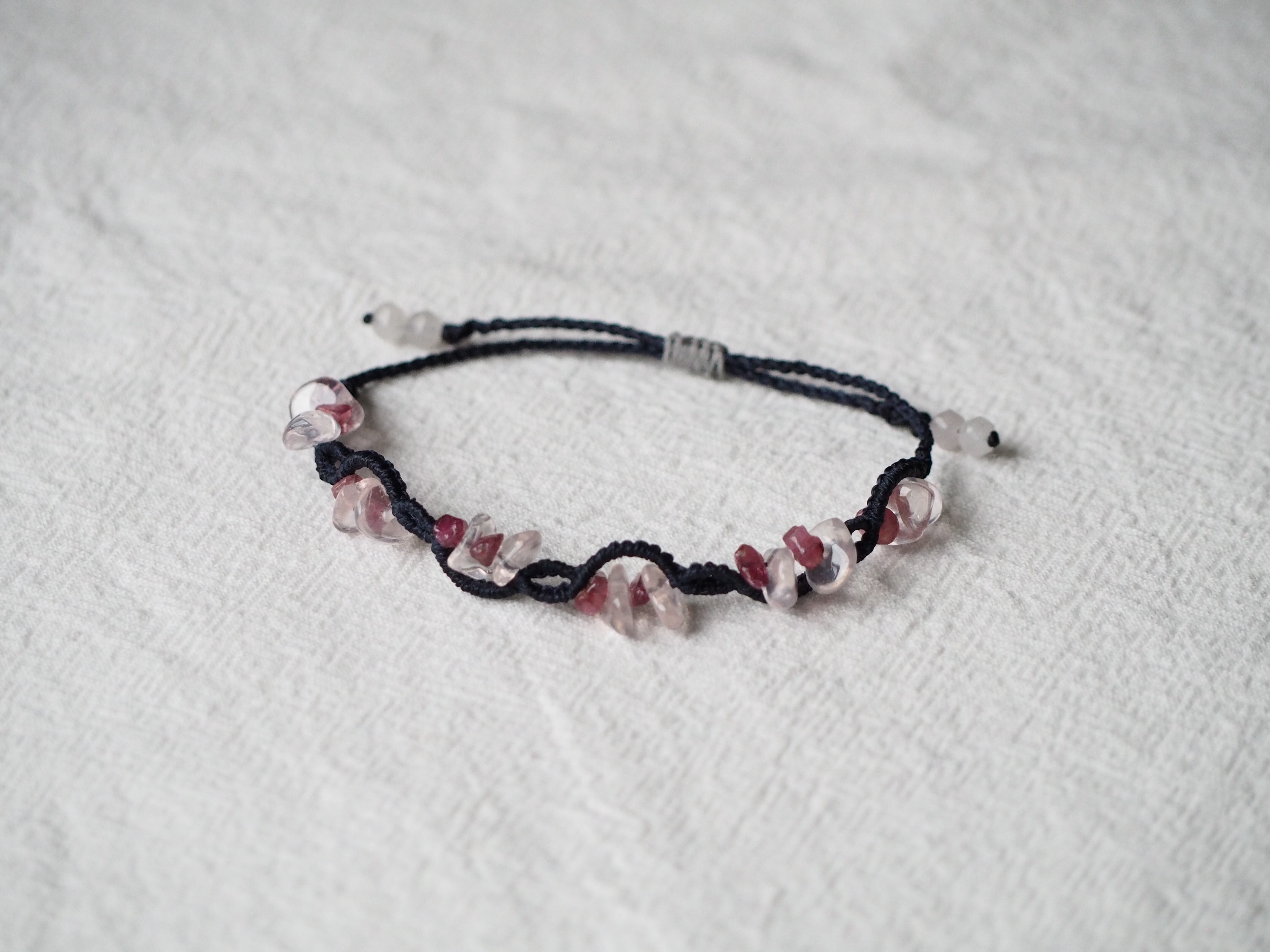 ローズクォーツ ピンクトルマリン マクラメ編みブレスレット 【Mare】シリーズ