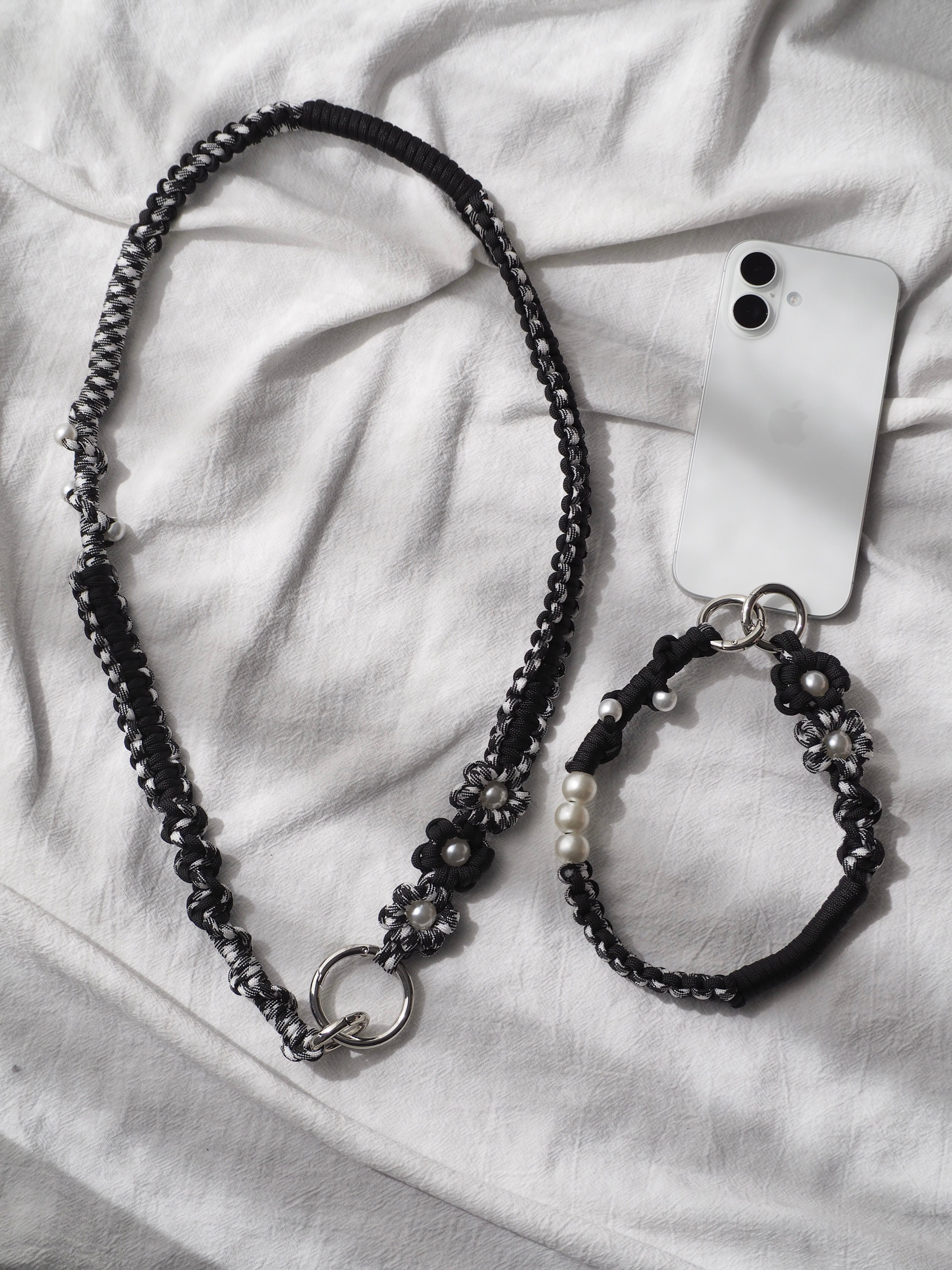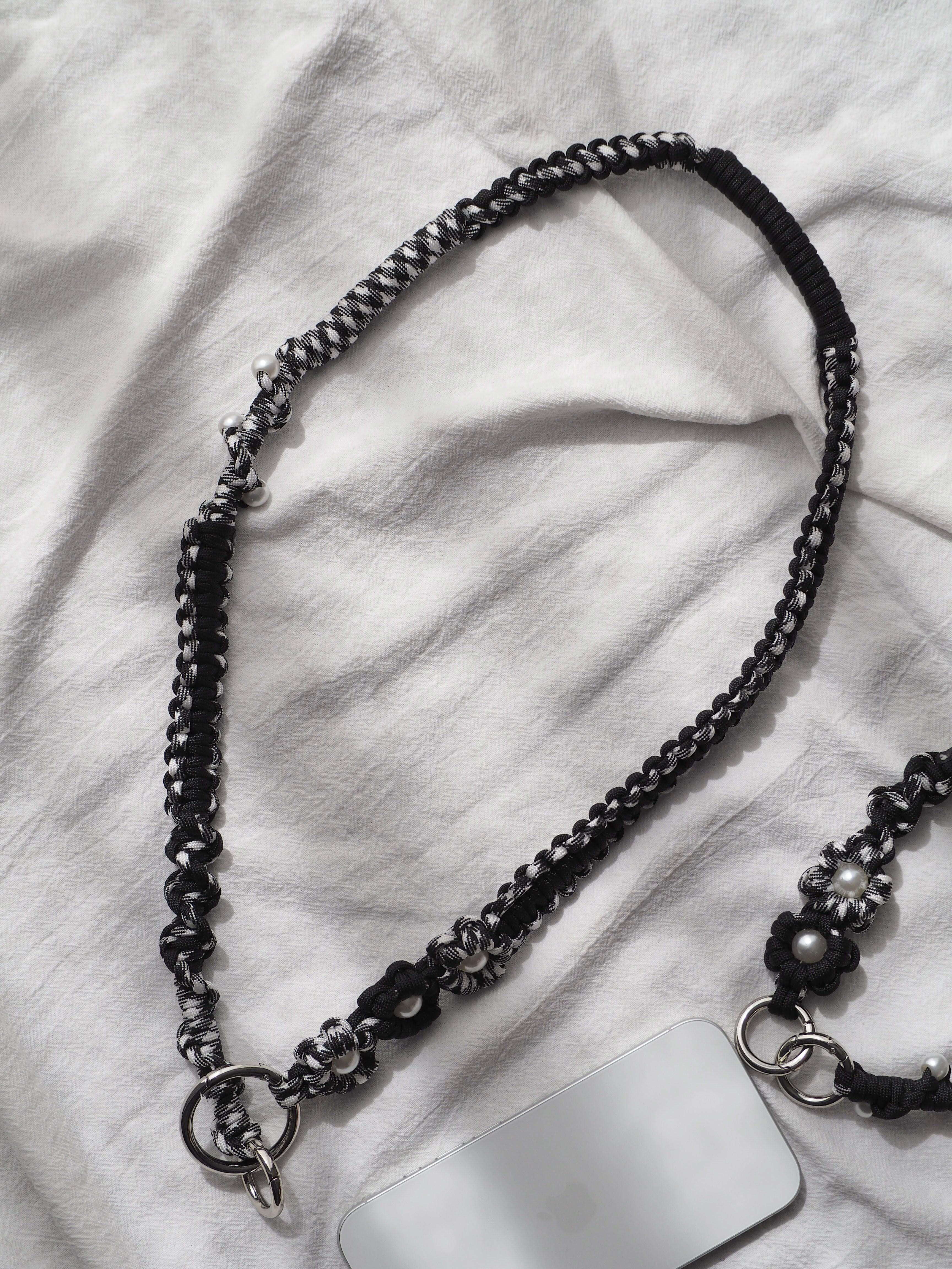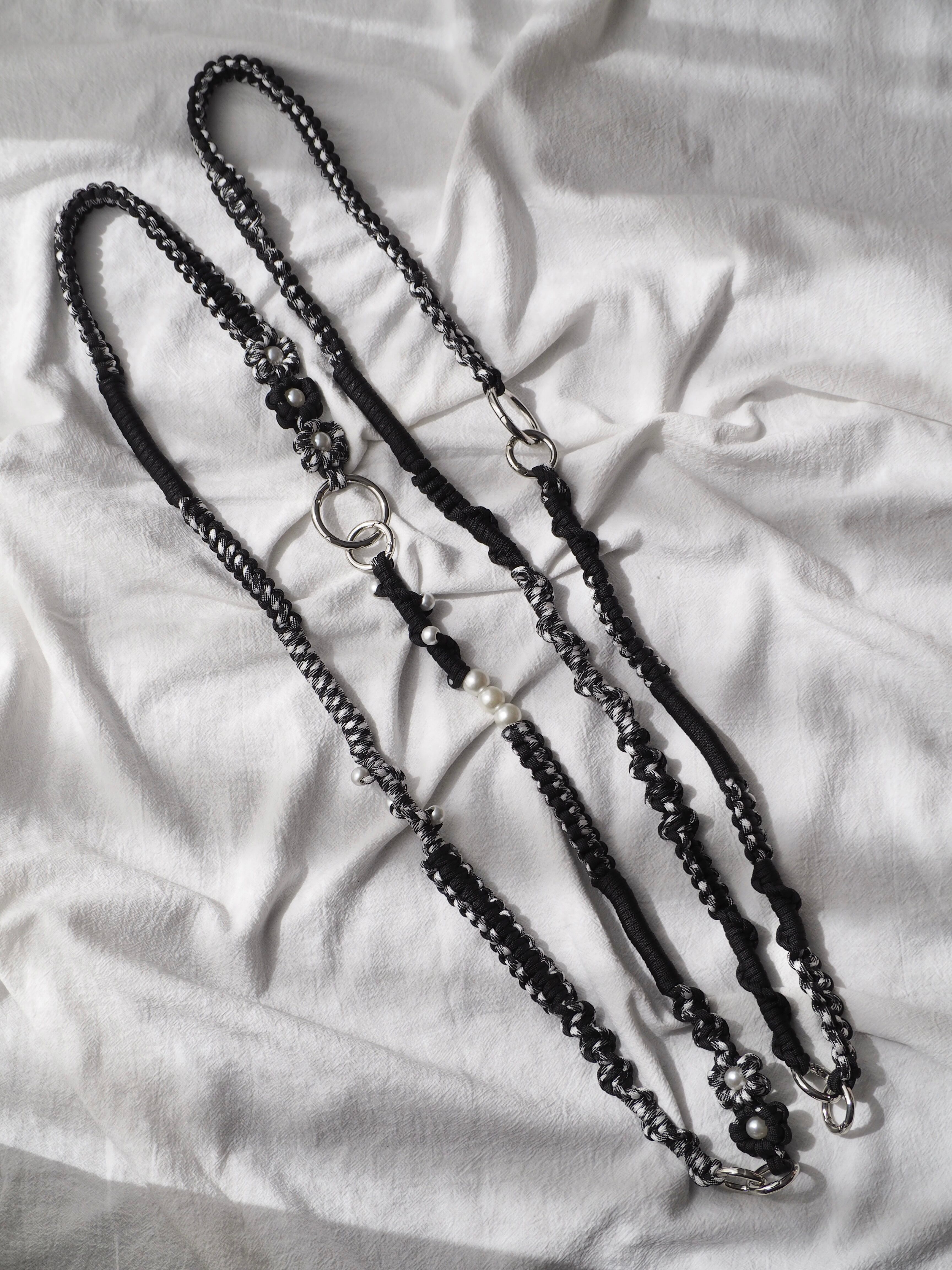 ・使用しているワックスコード、パラコードは焼き止め処理を行っている為、焼き跡が残っております。できる限り目立たないようにしておりますが、マクラメ編みの特性としてご理解いただきますよう、お願いいたします。