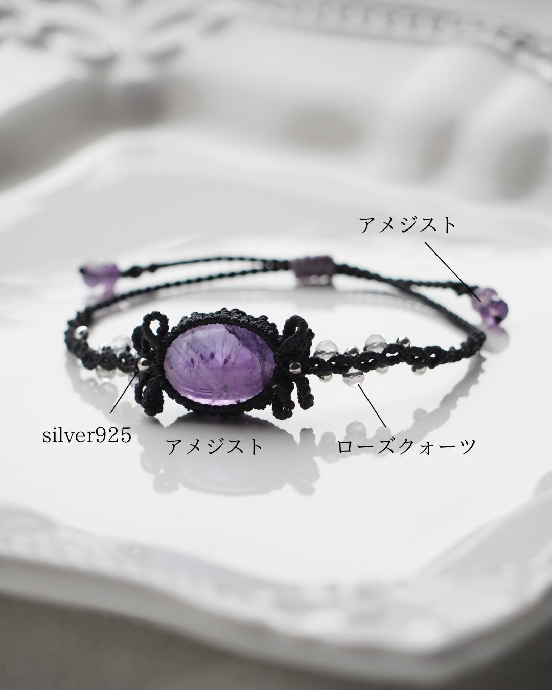 アメジスト マクラメ編みブレスレット 【Lina】シリーズ