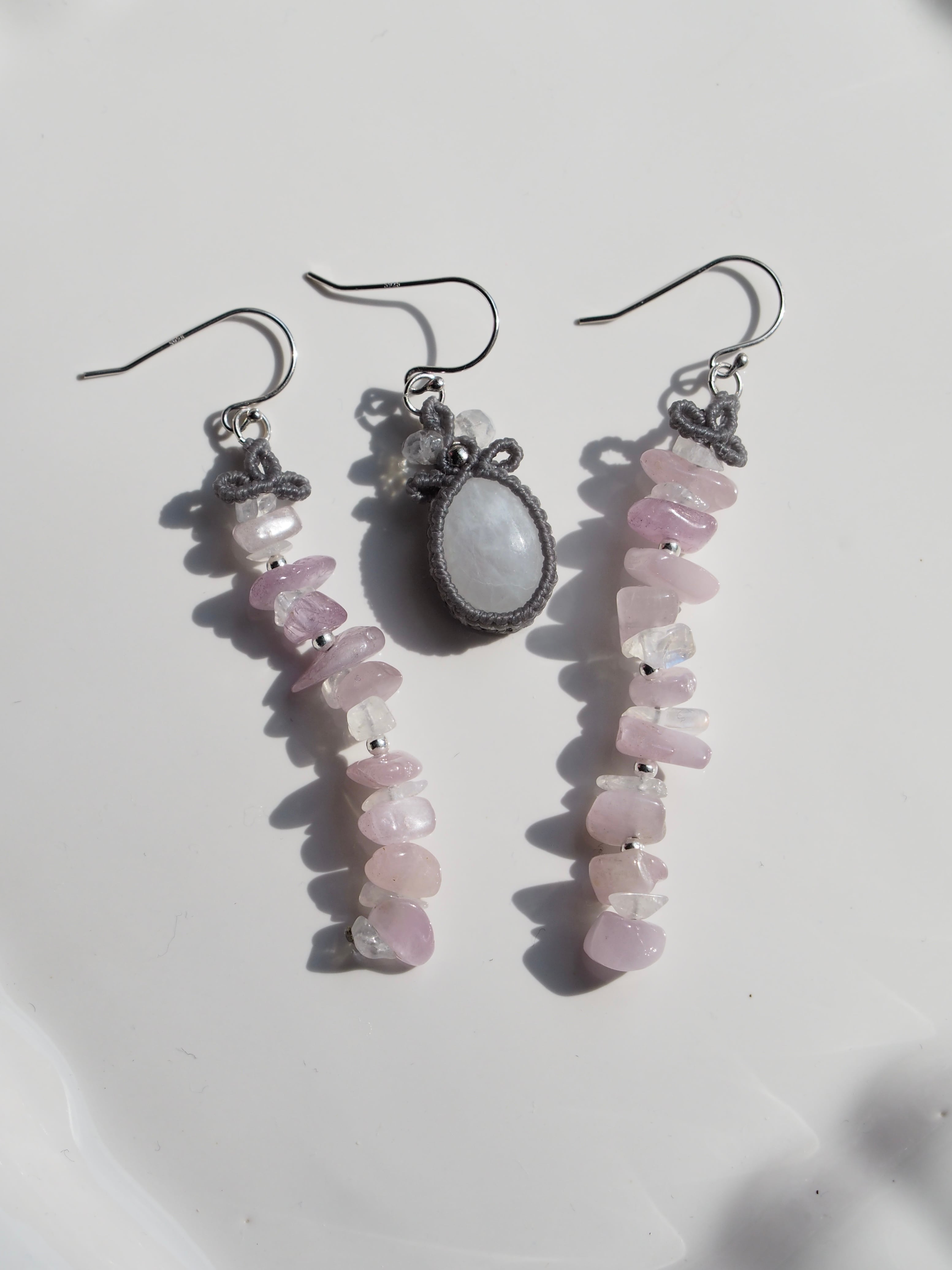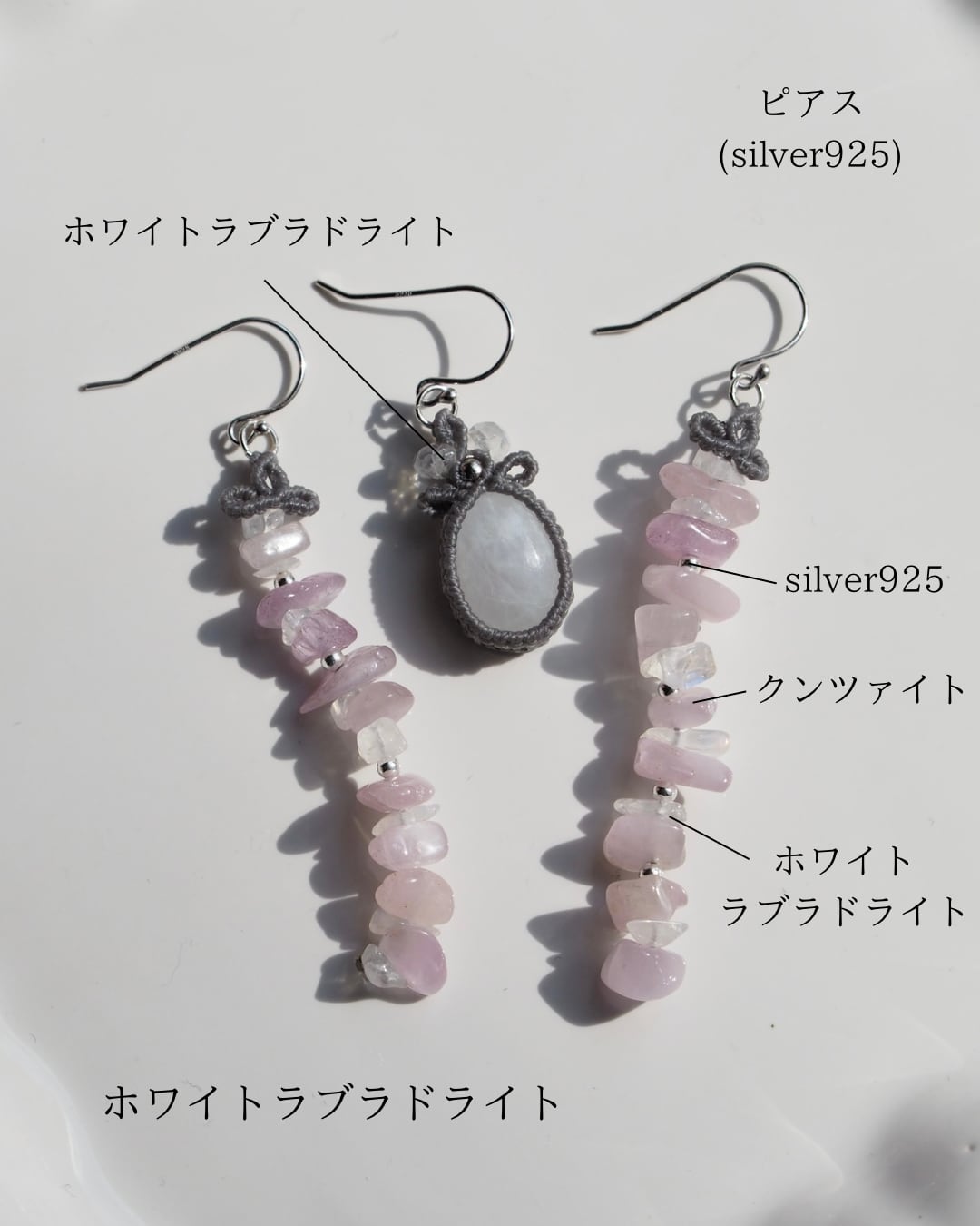 ビーズ:silver925、ホワイトラブラドライト、クンツァイト