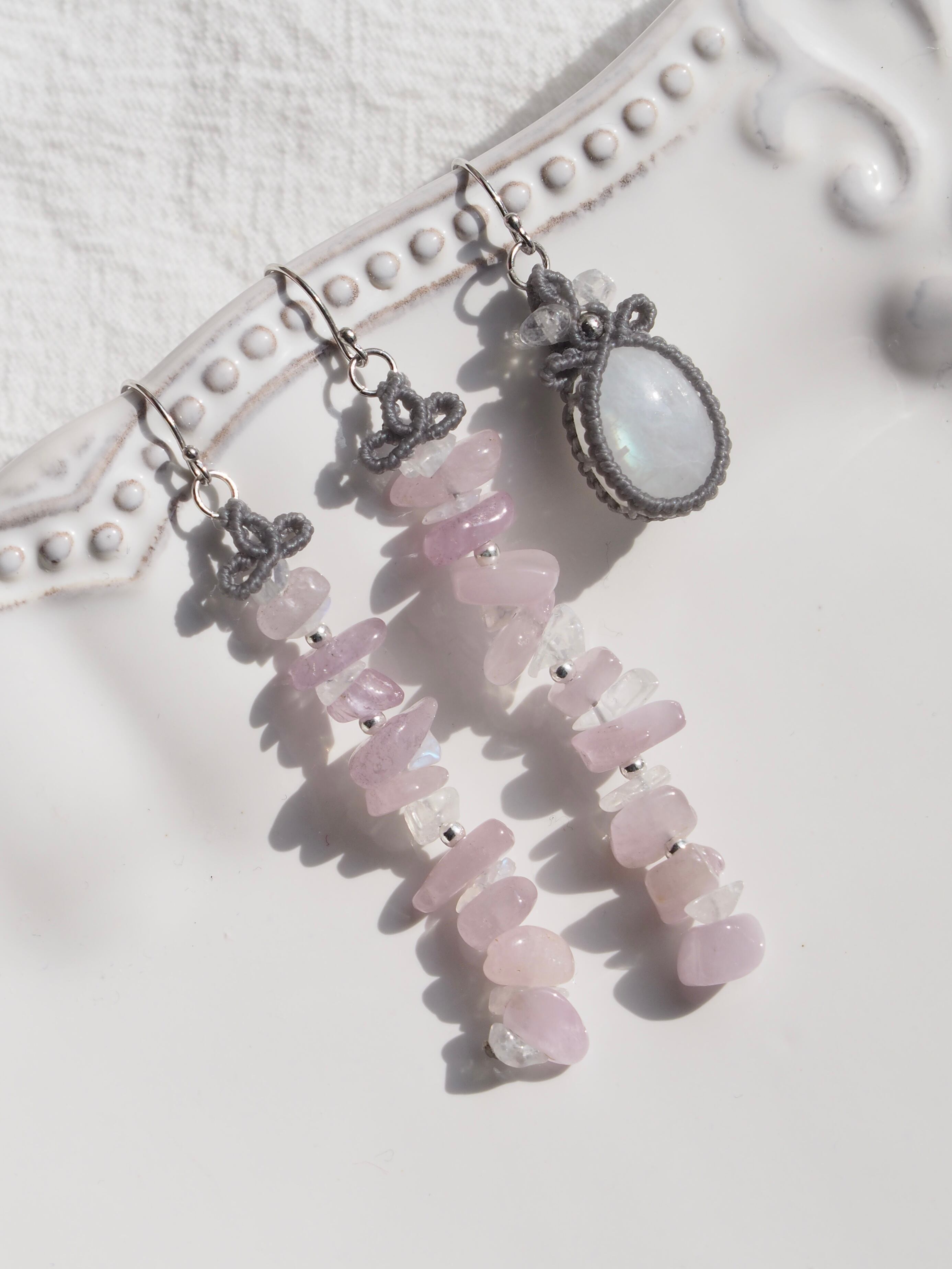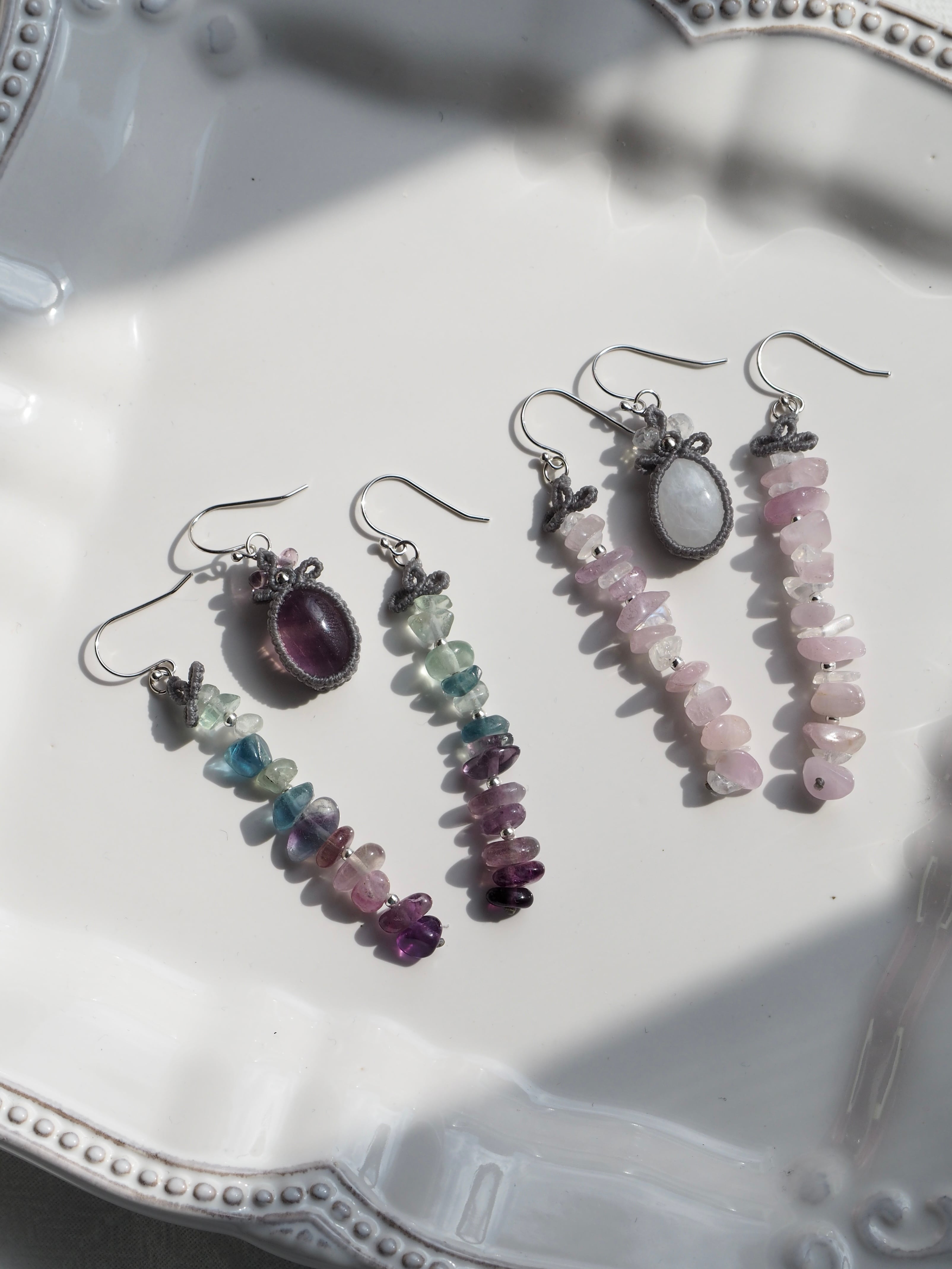 ホワイトラブラドライト マクラメ編みピアス 【Iris】シリーズ