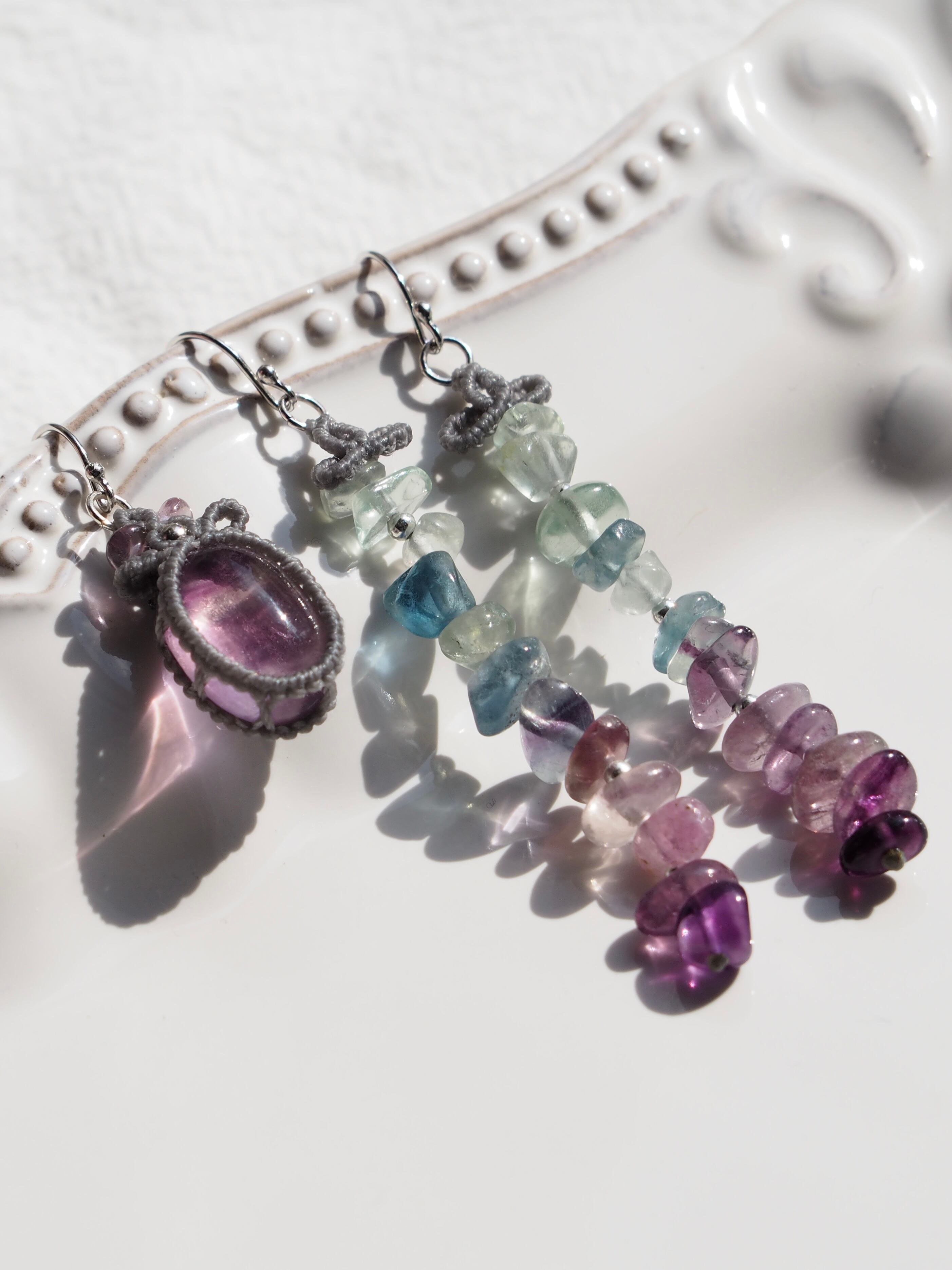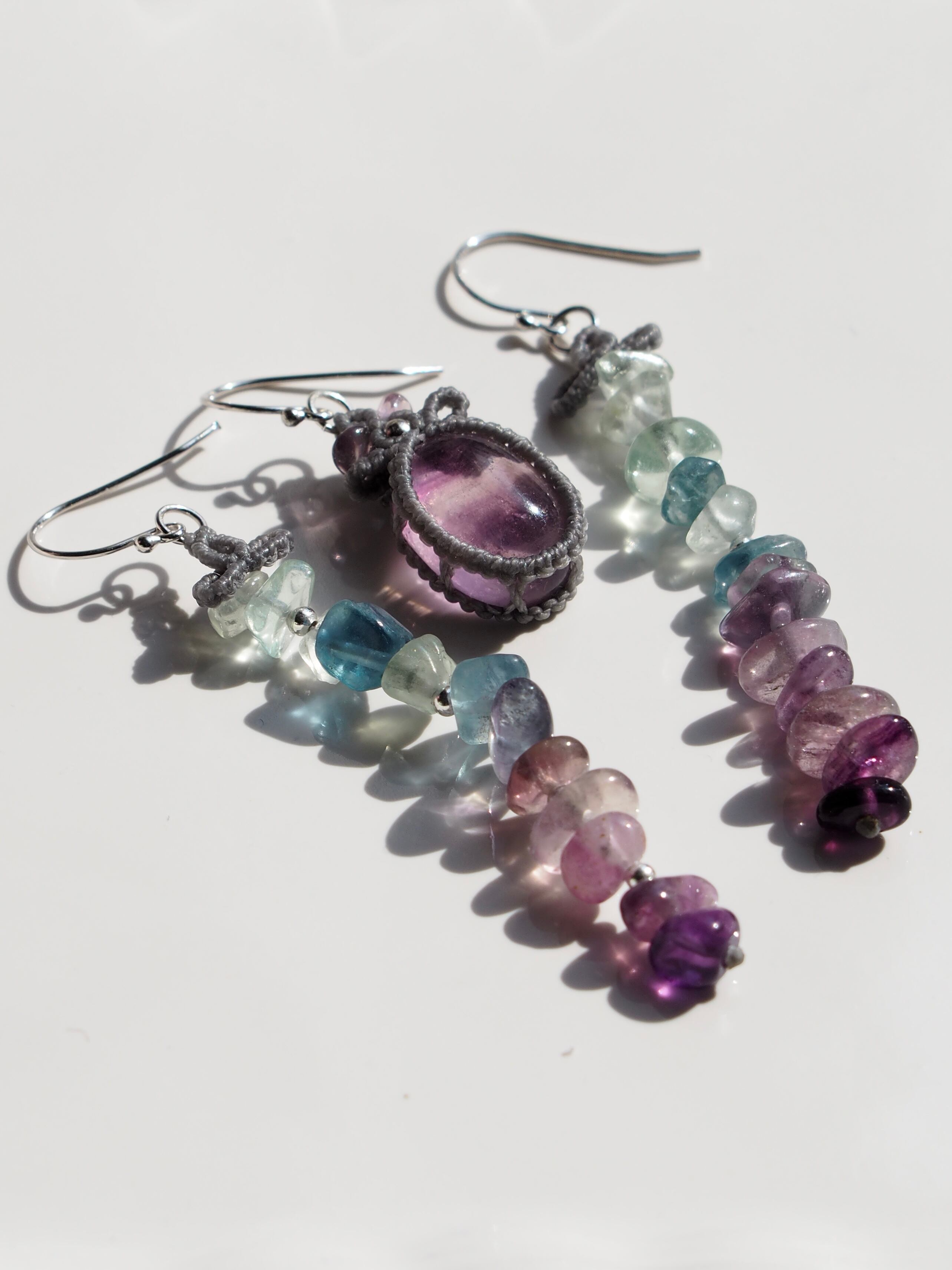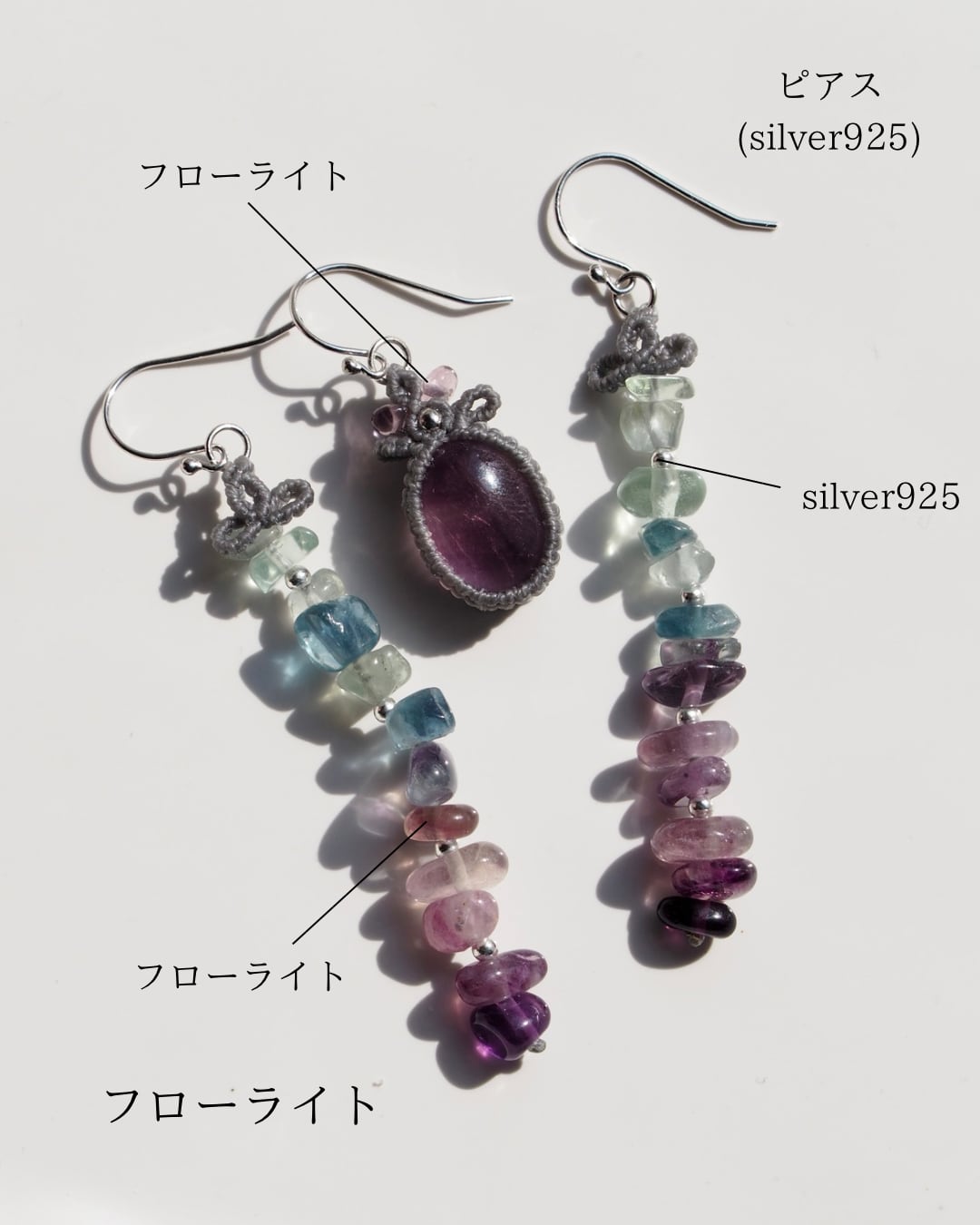 フローライト マクラメ編みピアス 【Iris】シリーズ