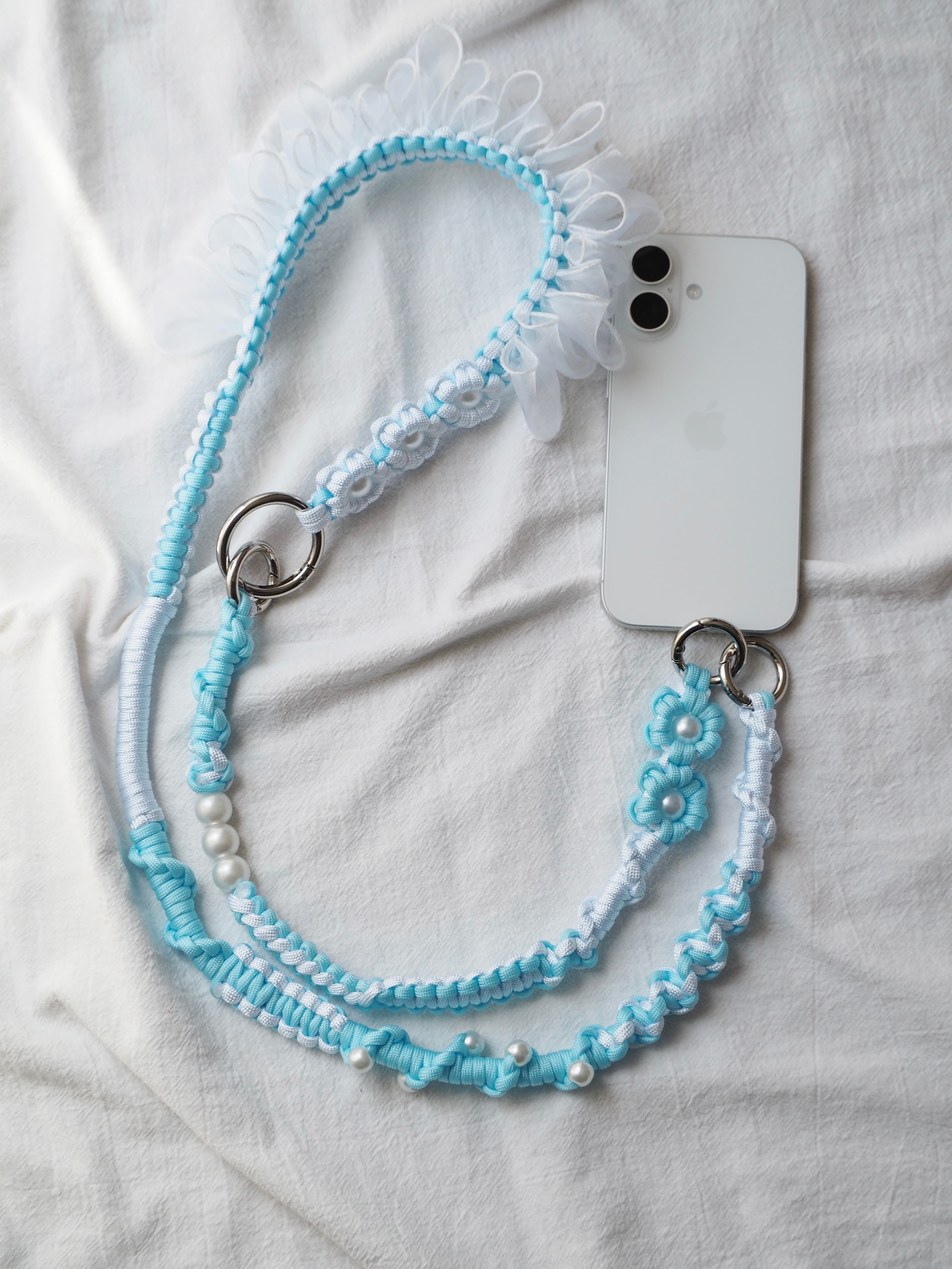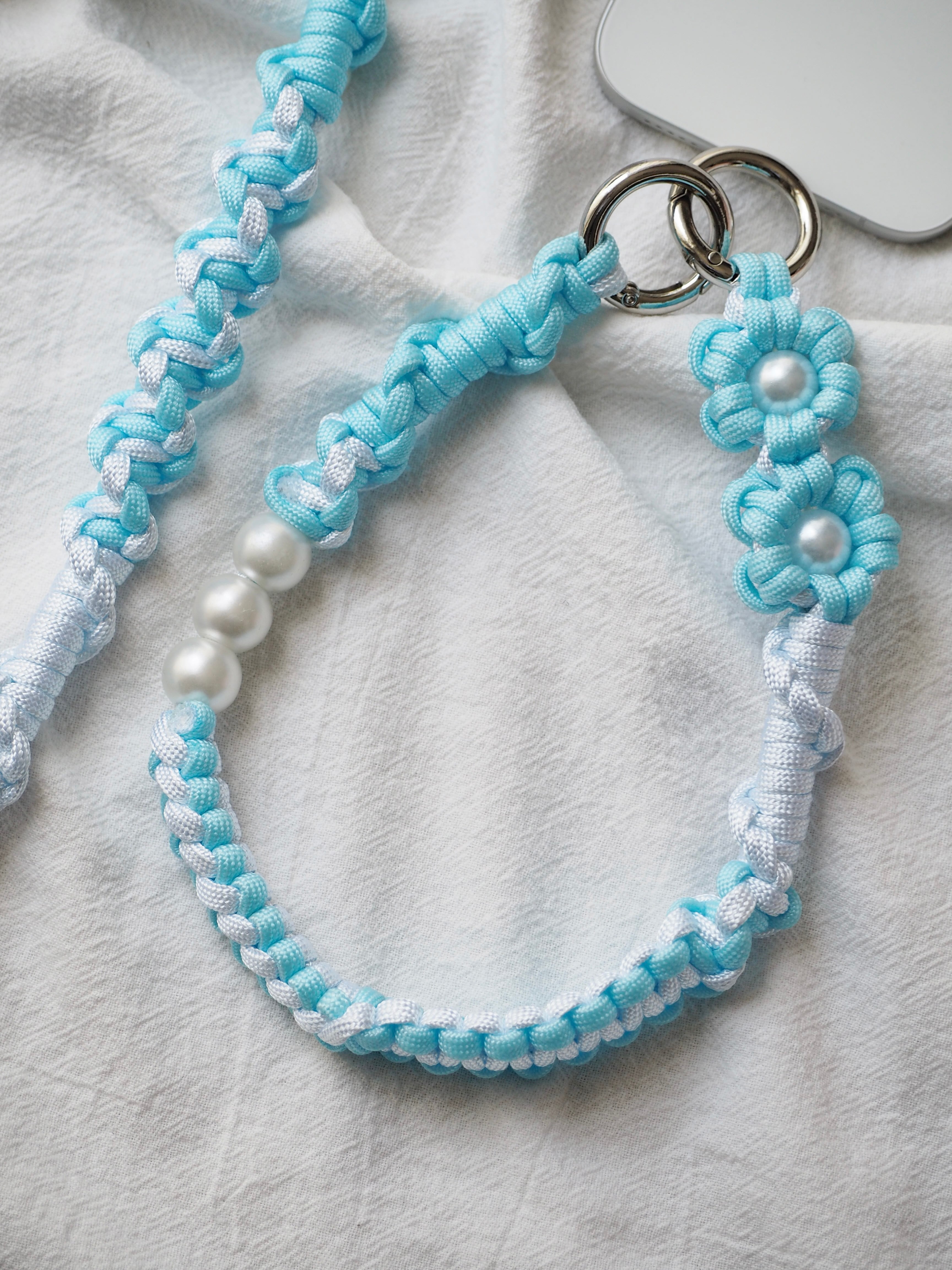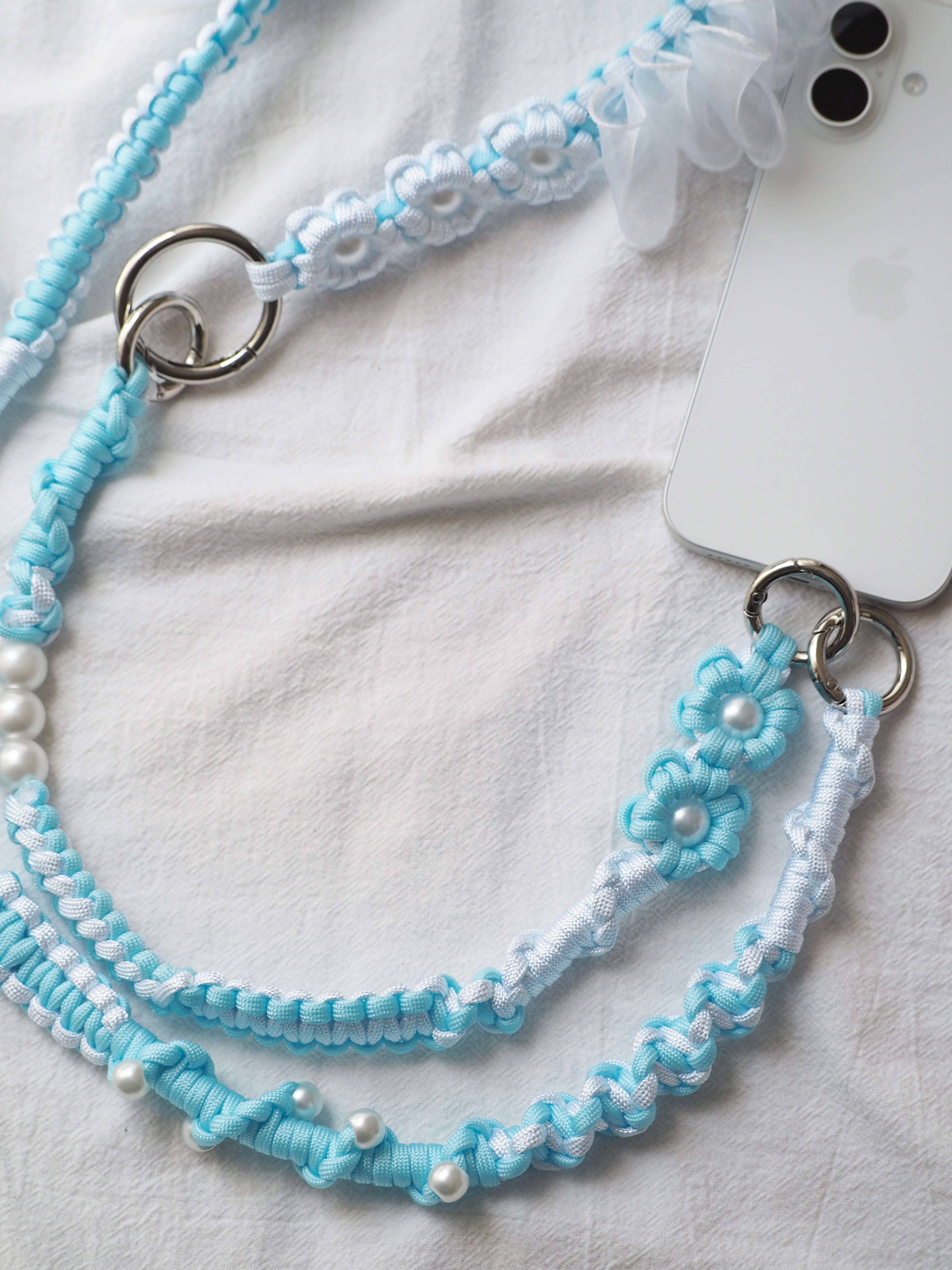 ・使用しているワックスコード、パラコードは焼き止め処理を行っている為、焼き跡が残っております。できる限り目立たないようにしておりますが、マクラメ編みの特性としてご理解いただきますよう、お願いいたします。