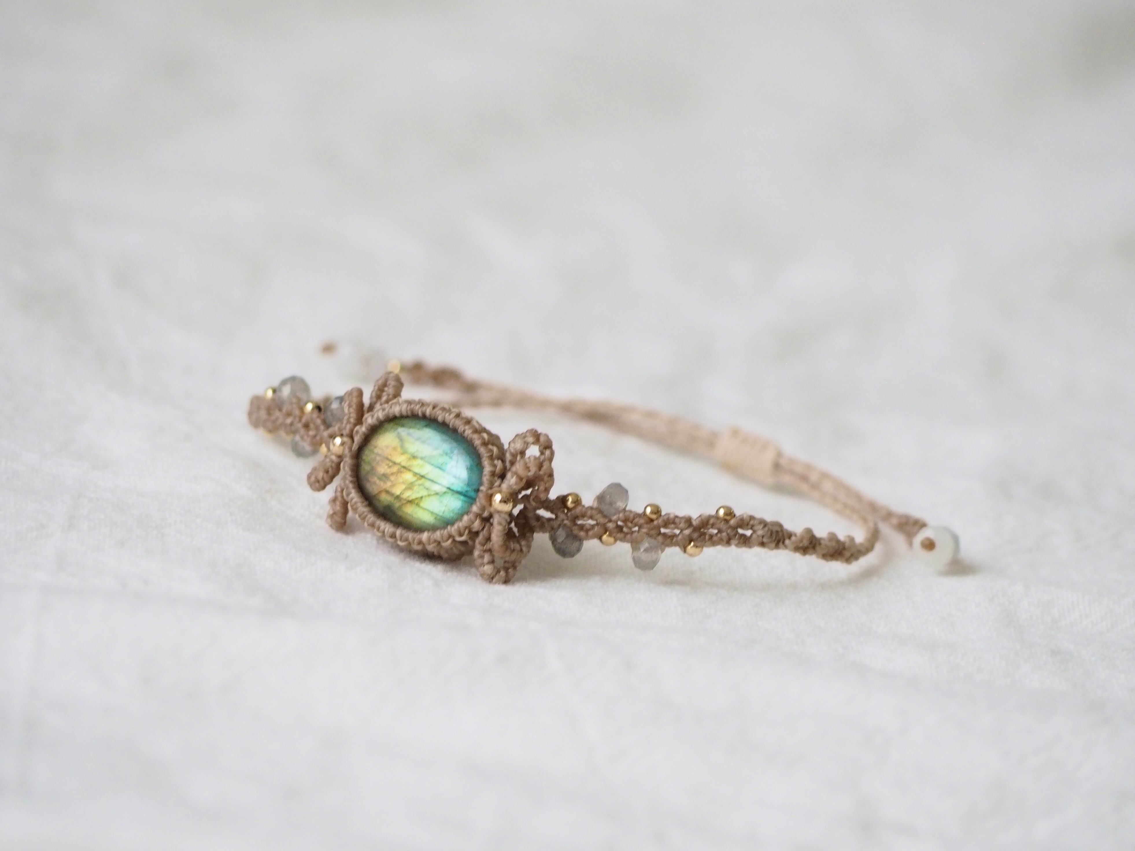 ラブラドライト マクラメ編みブレスレット 【Lina】シリーズ