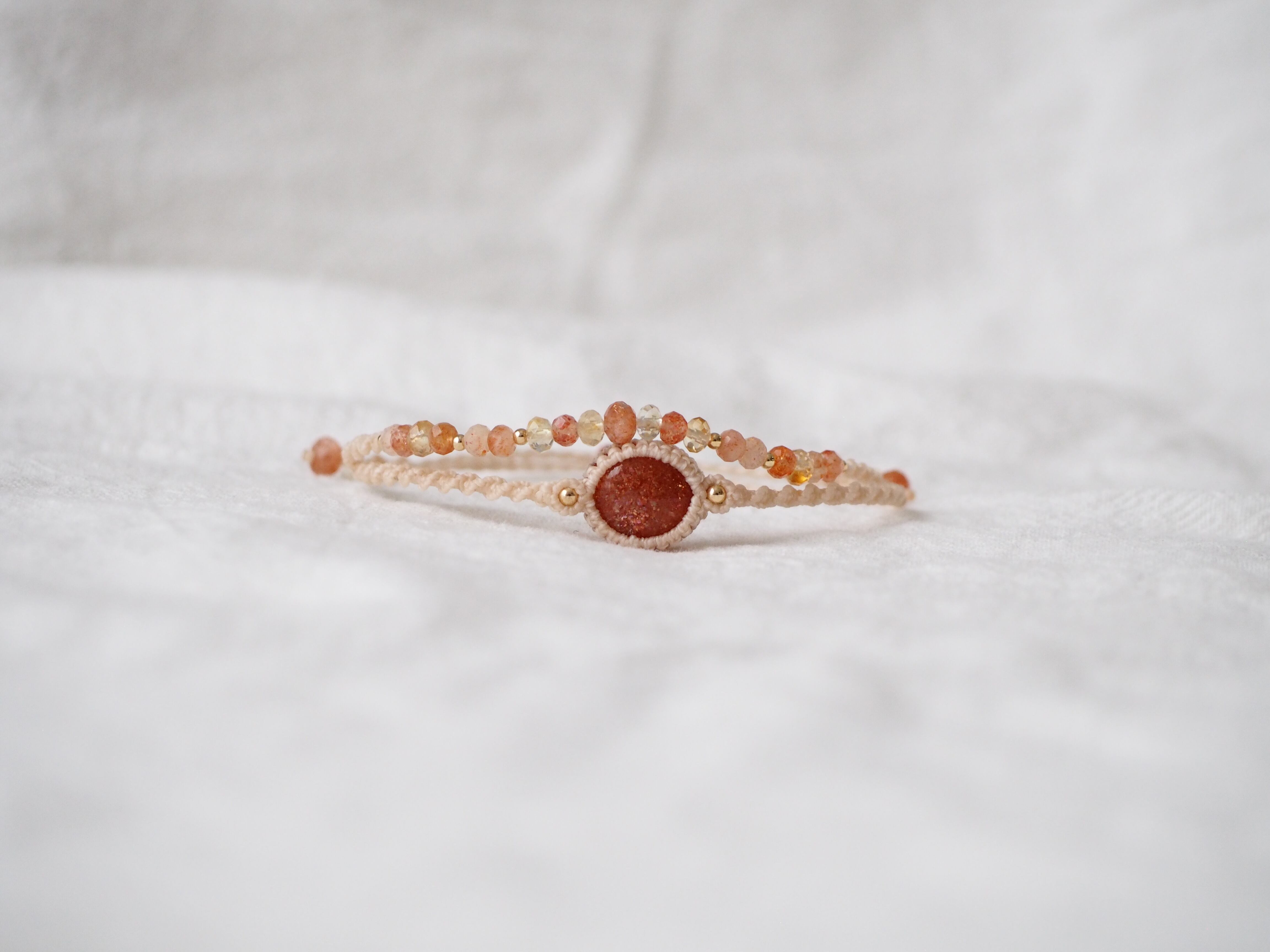 サンストーン マクラメ編みブレスレット 【Stella】シリーズ