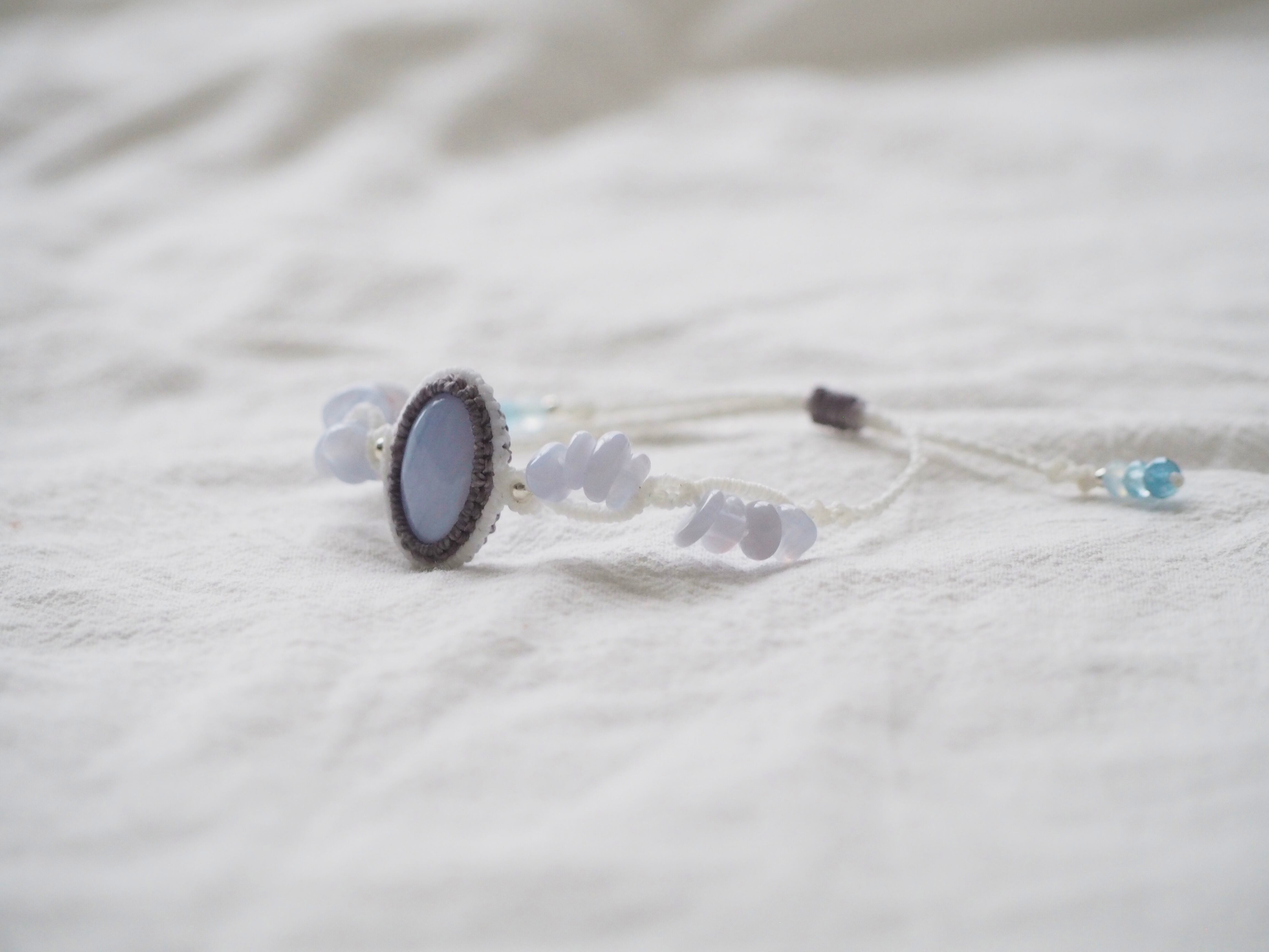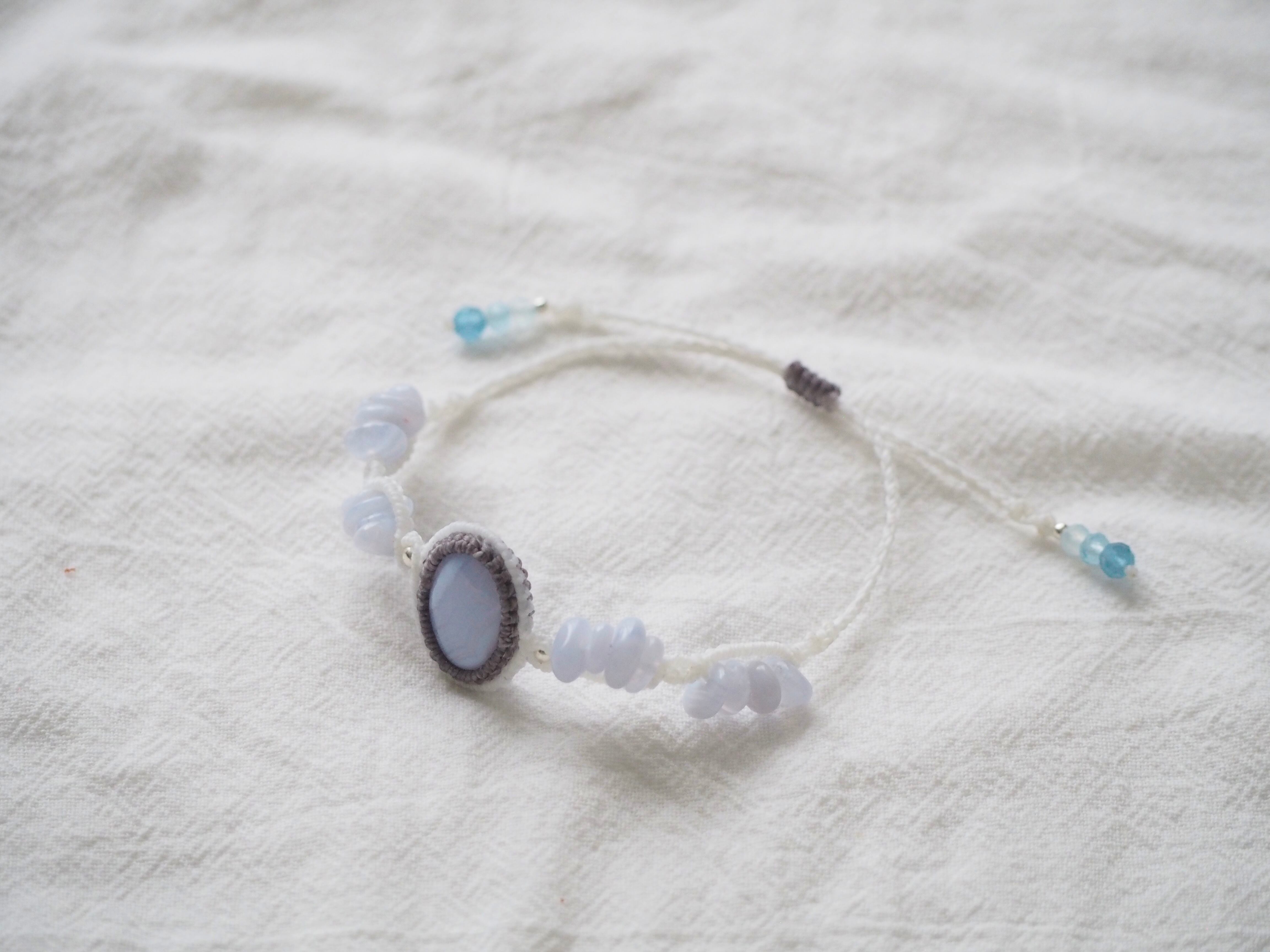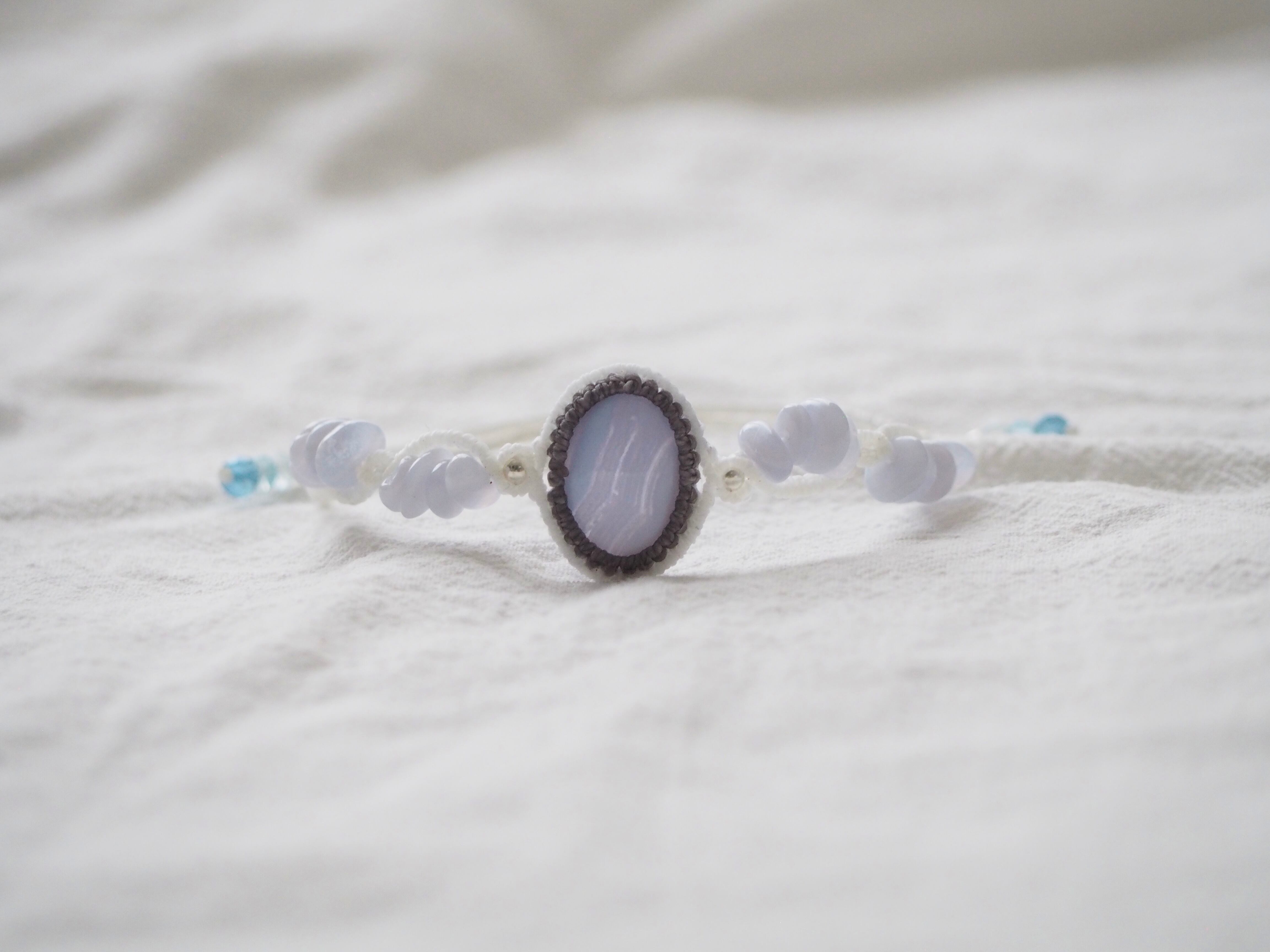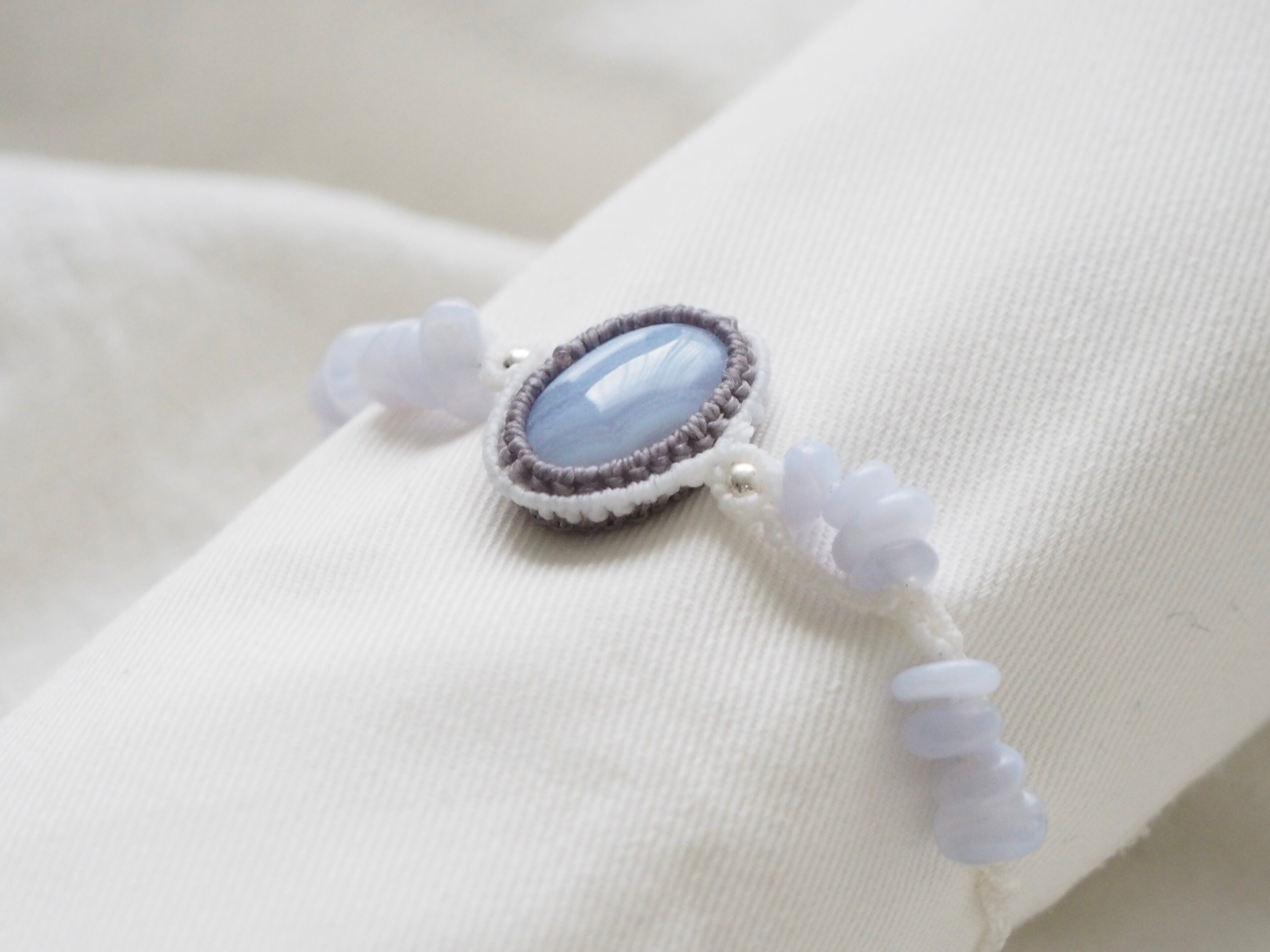 ブルーレースアゲート マクラメ編みブレスレット 【Mare】シリーズ