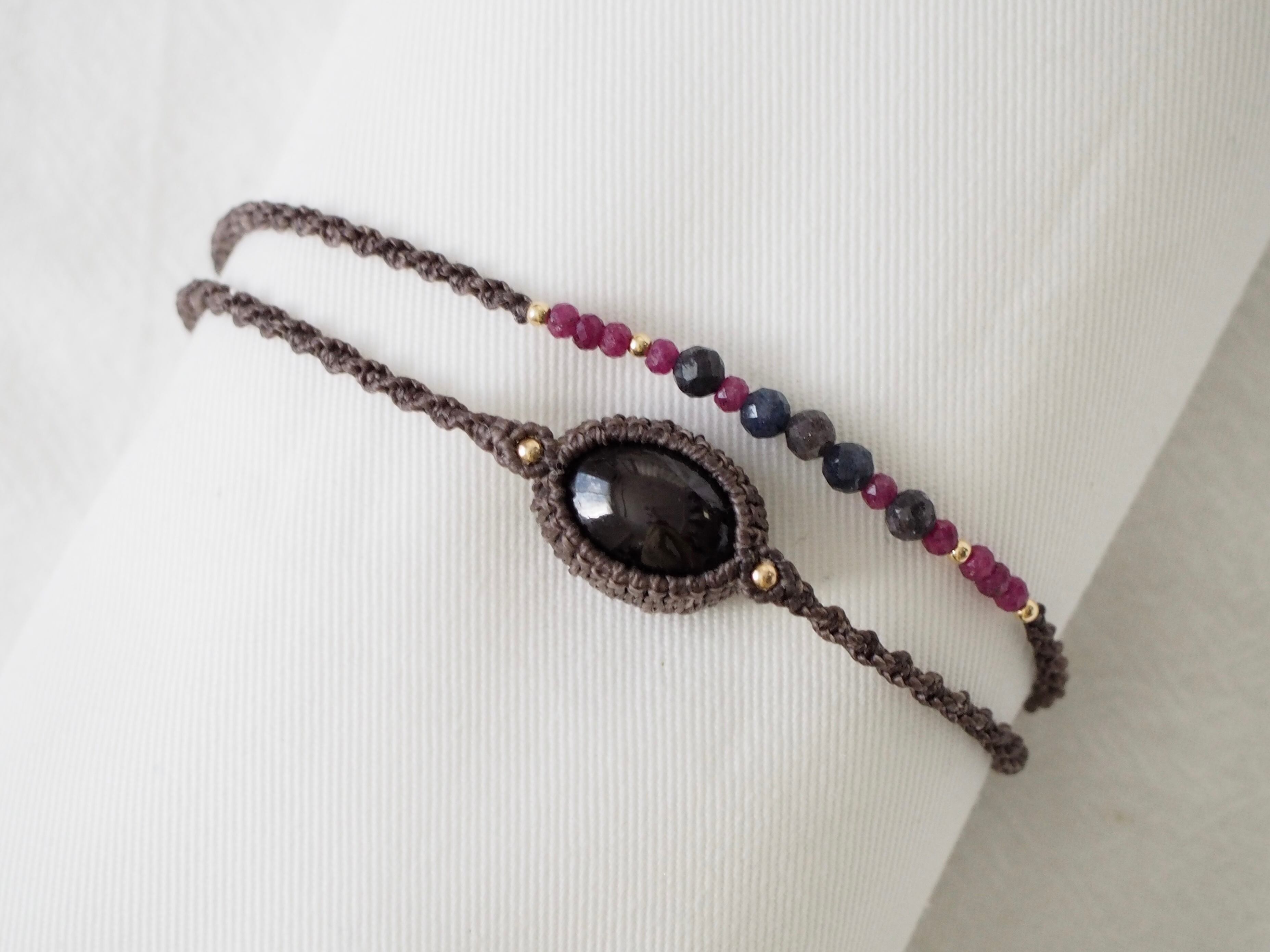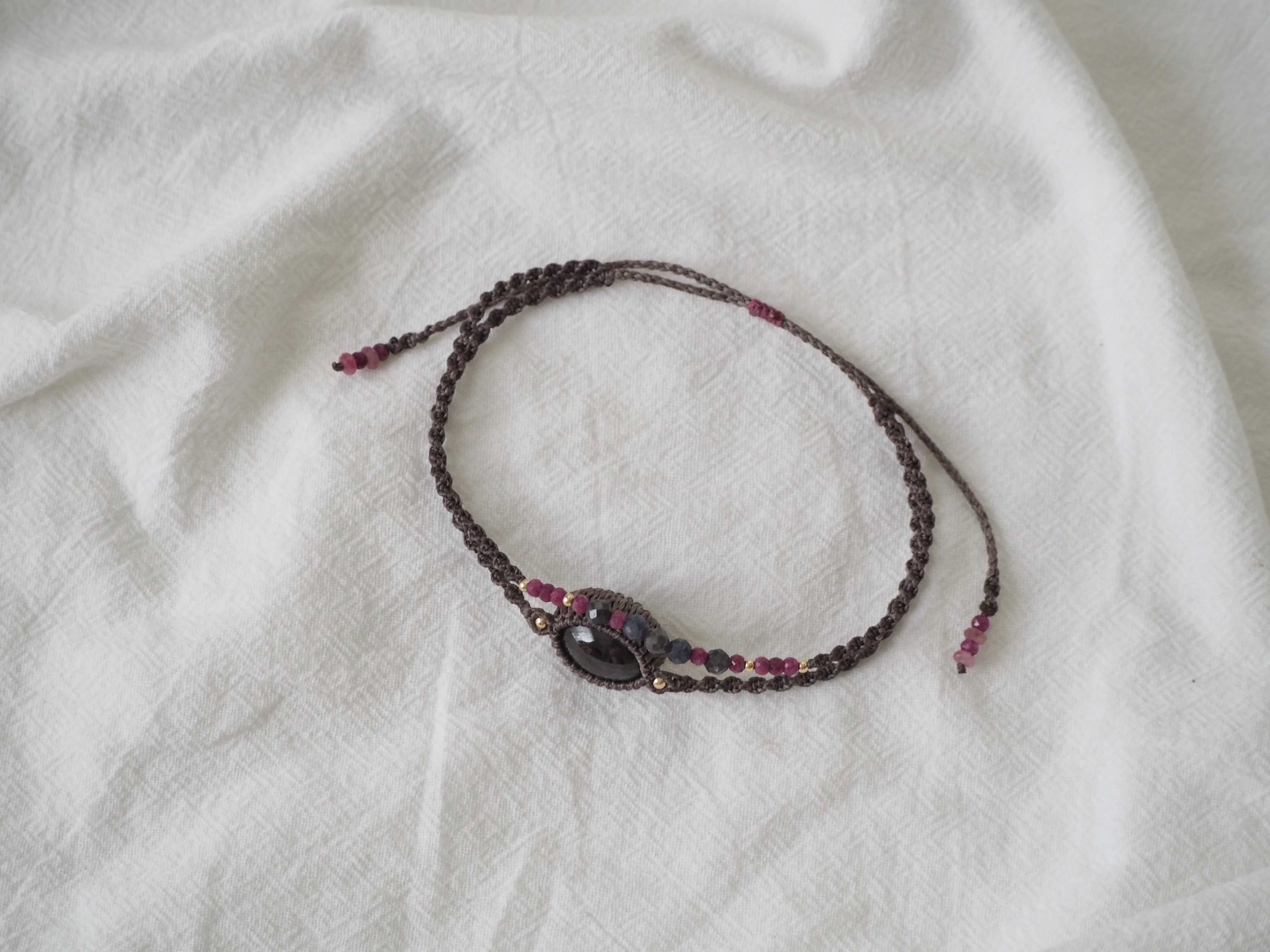 スターガーネット マクラメ編みアンクレット 【Stella】シリーズ