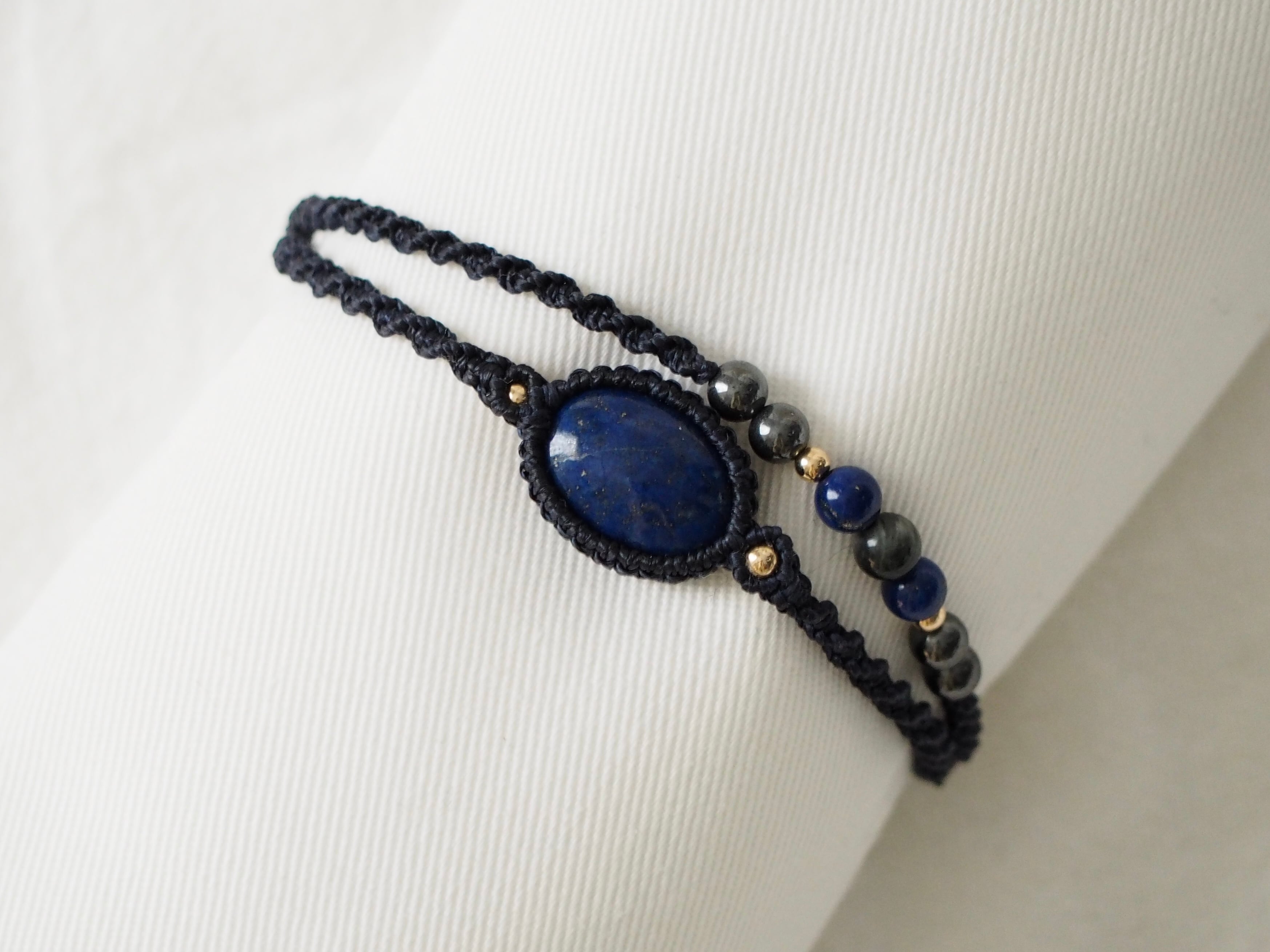 ラピスラズリ マクラメ編みブレスレット 【Stella】シリーズ