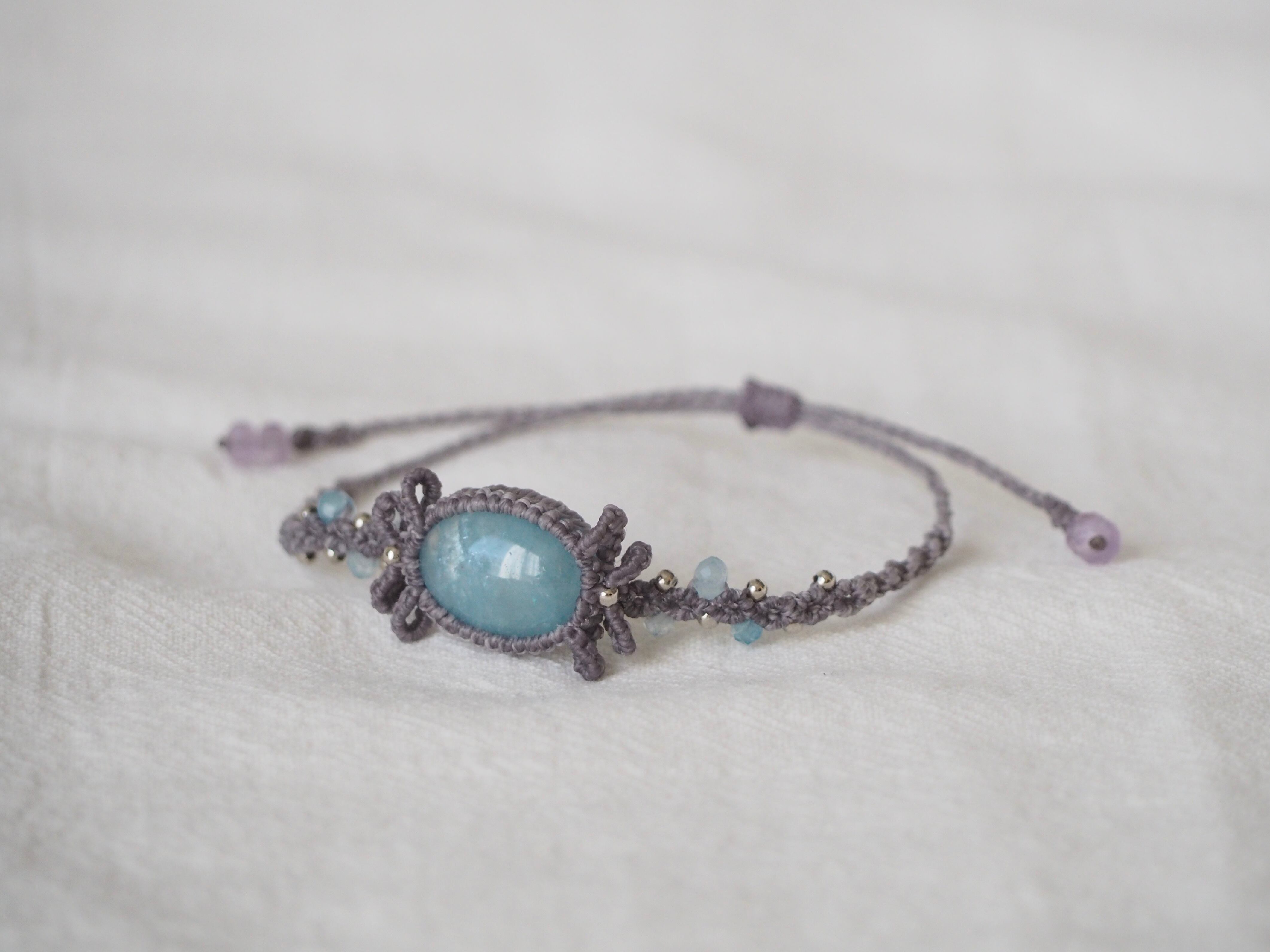 アクアマリン マクラメ編みブレスレット 【Lina】シリーズ