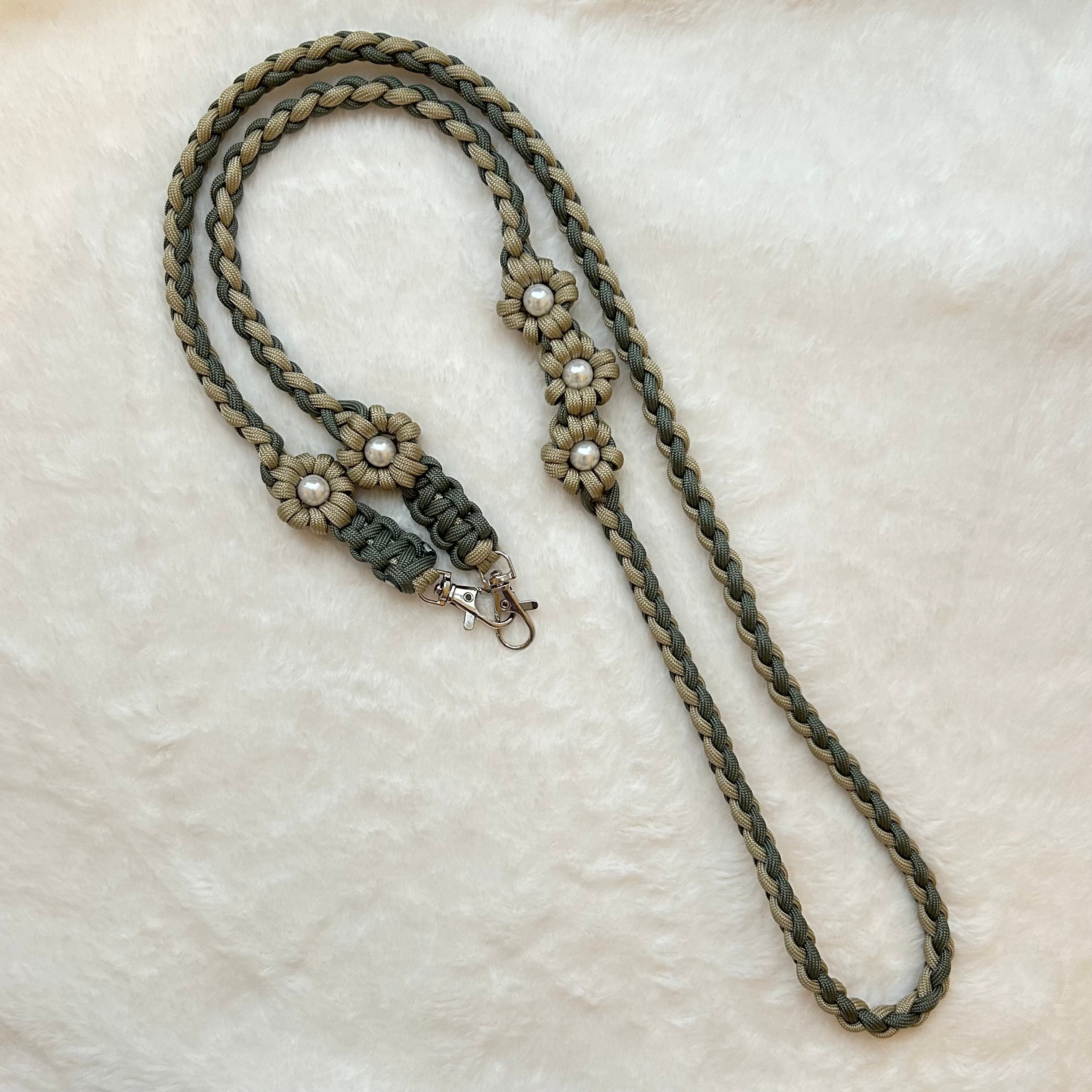 ・使用しているワックスコード、パラコードは焼き止め処理を行っている為、焼き跡が残っております。できる限り目立たないようにしておりますが、マクラメ編みの特性としてご理解いただきますよう、お願いいたします。