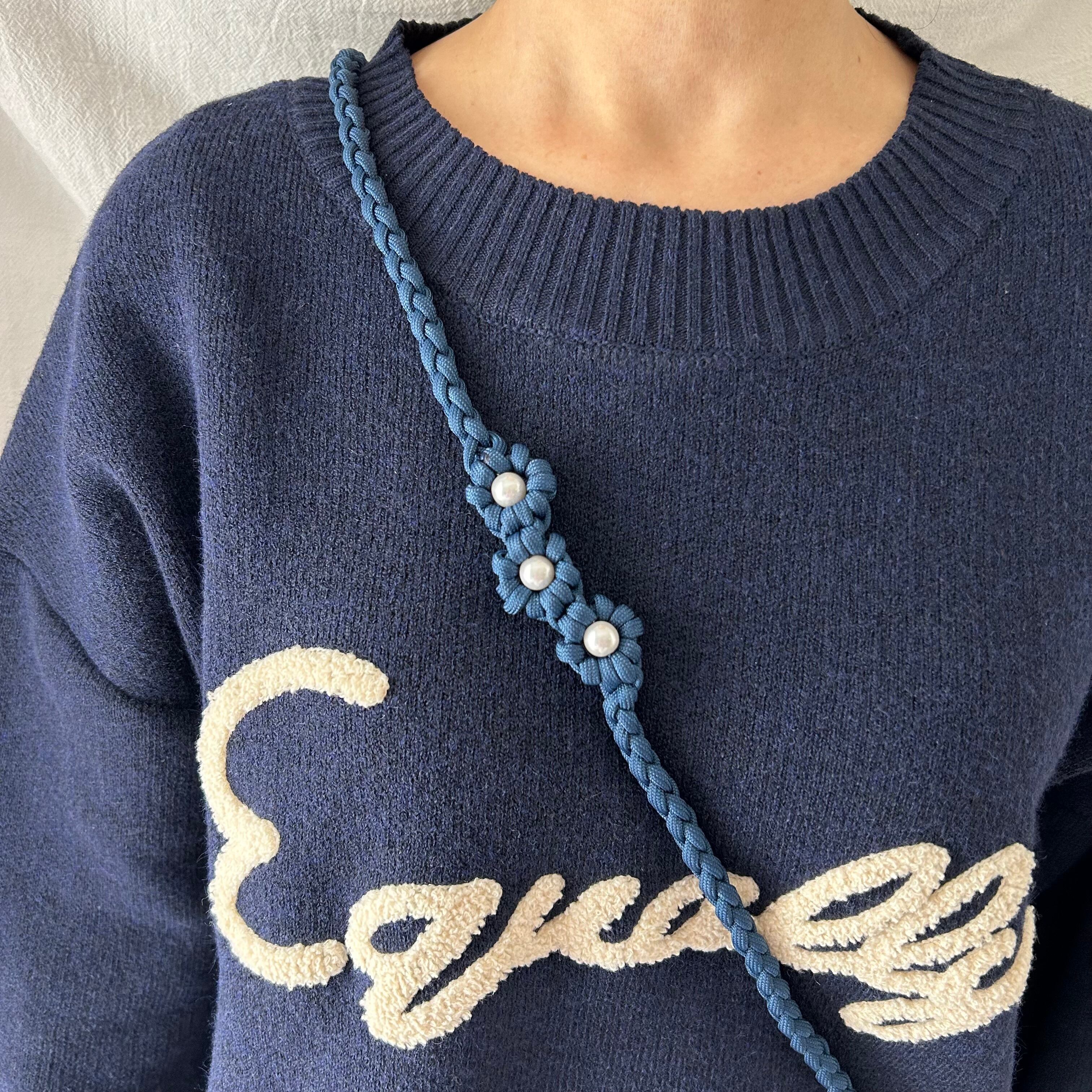 ・使用しているワックスコード、パラコードは焼き止め処理を行っている為、焼き跡が残っております。できる限り目立たないようにしておりますが、マクラメ編みの特性としてご理解いただきますよう、お願いいたします。