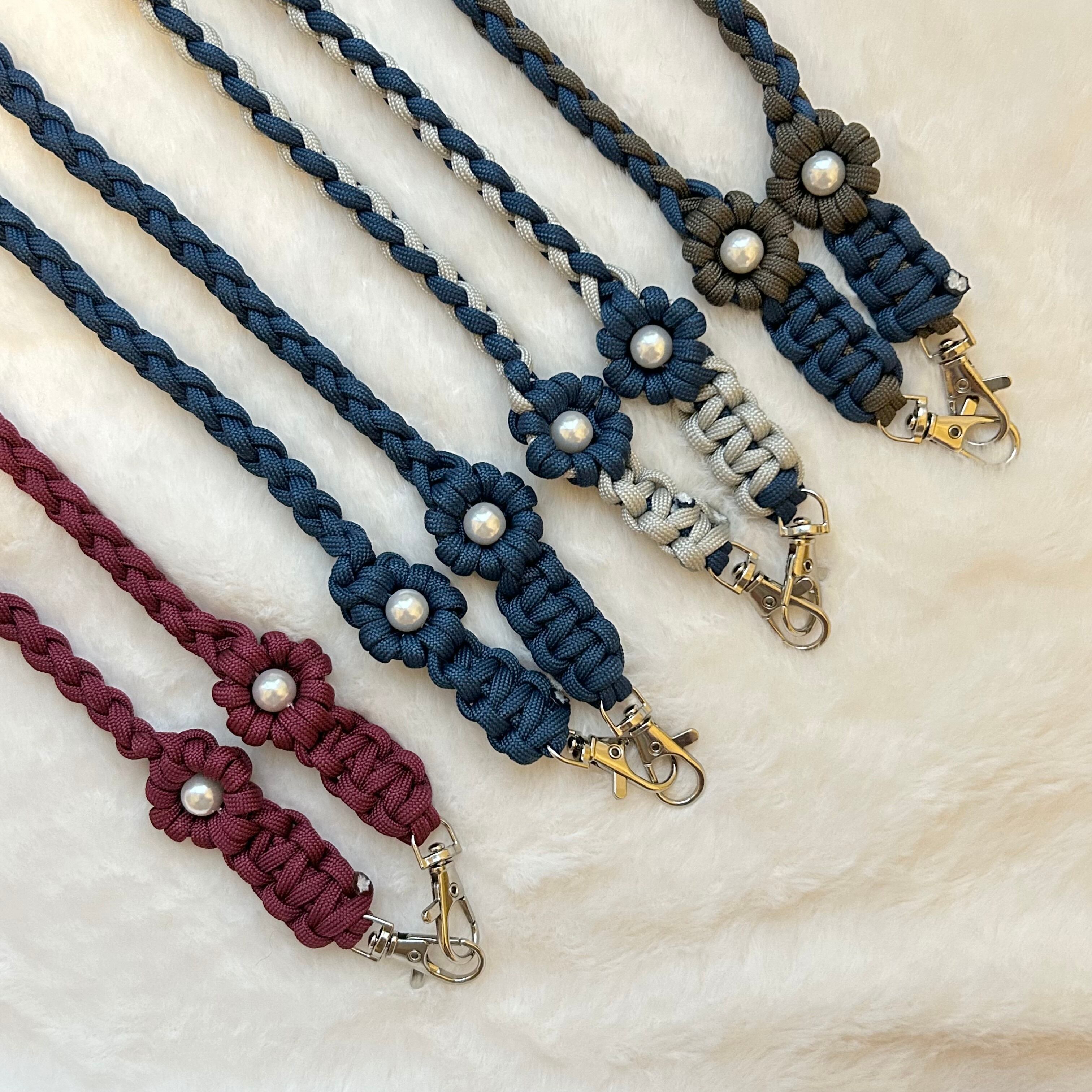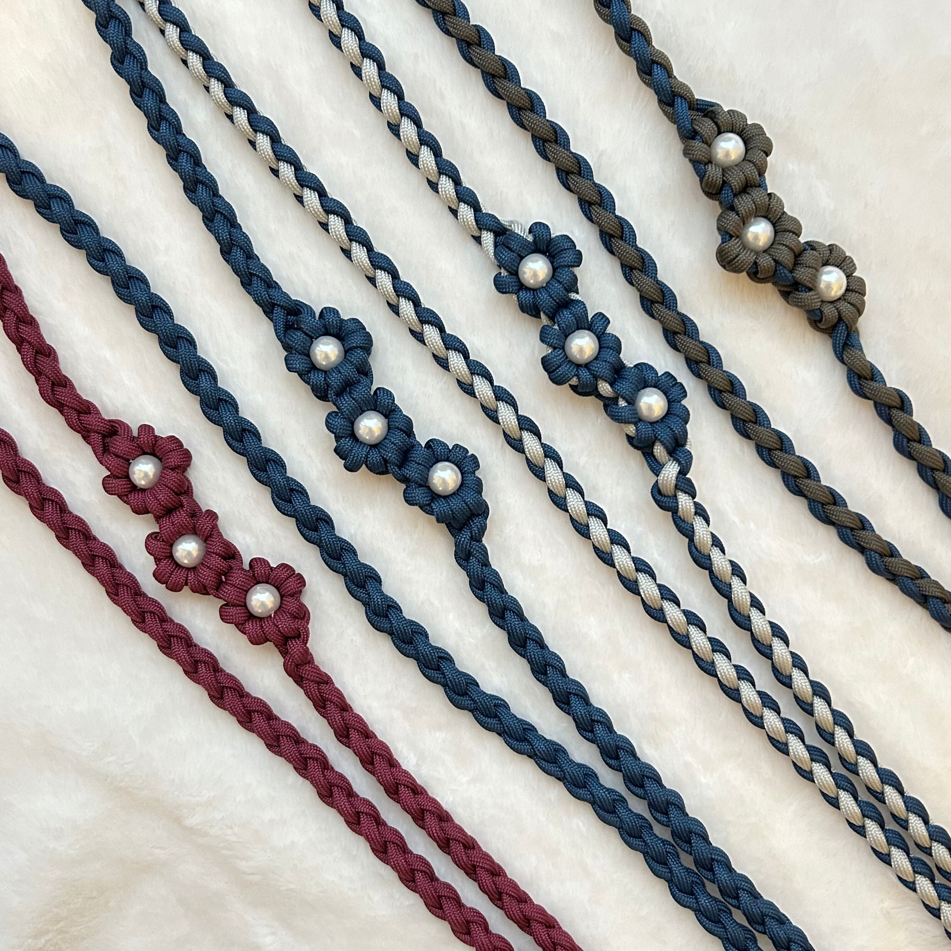 ・使用しているワックスコード、パラコードは焼き止め処理を行っている為、焼き跡が残っております。できる限り目立たないようにしておりますが、マクラメ編みの特性としてご理解いただきますよう、お願いいたします。