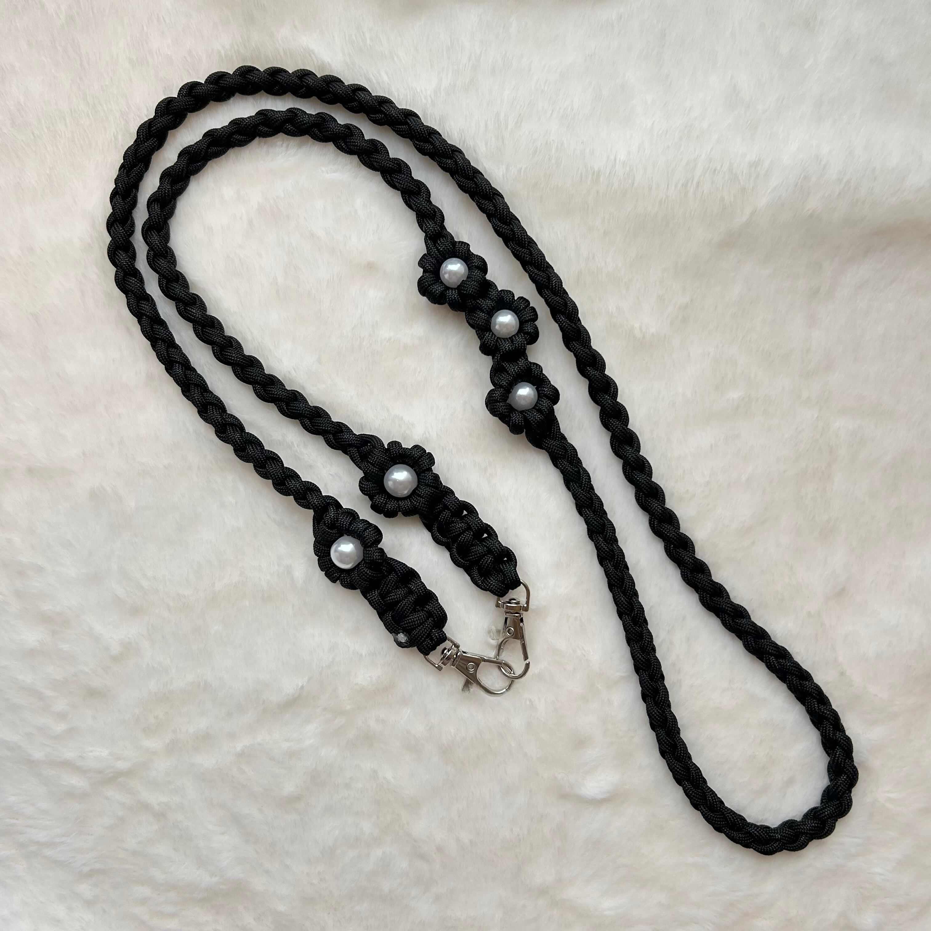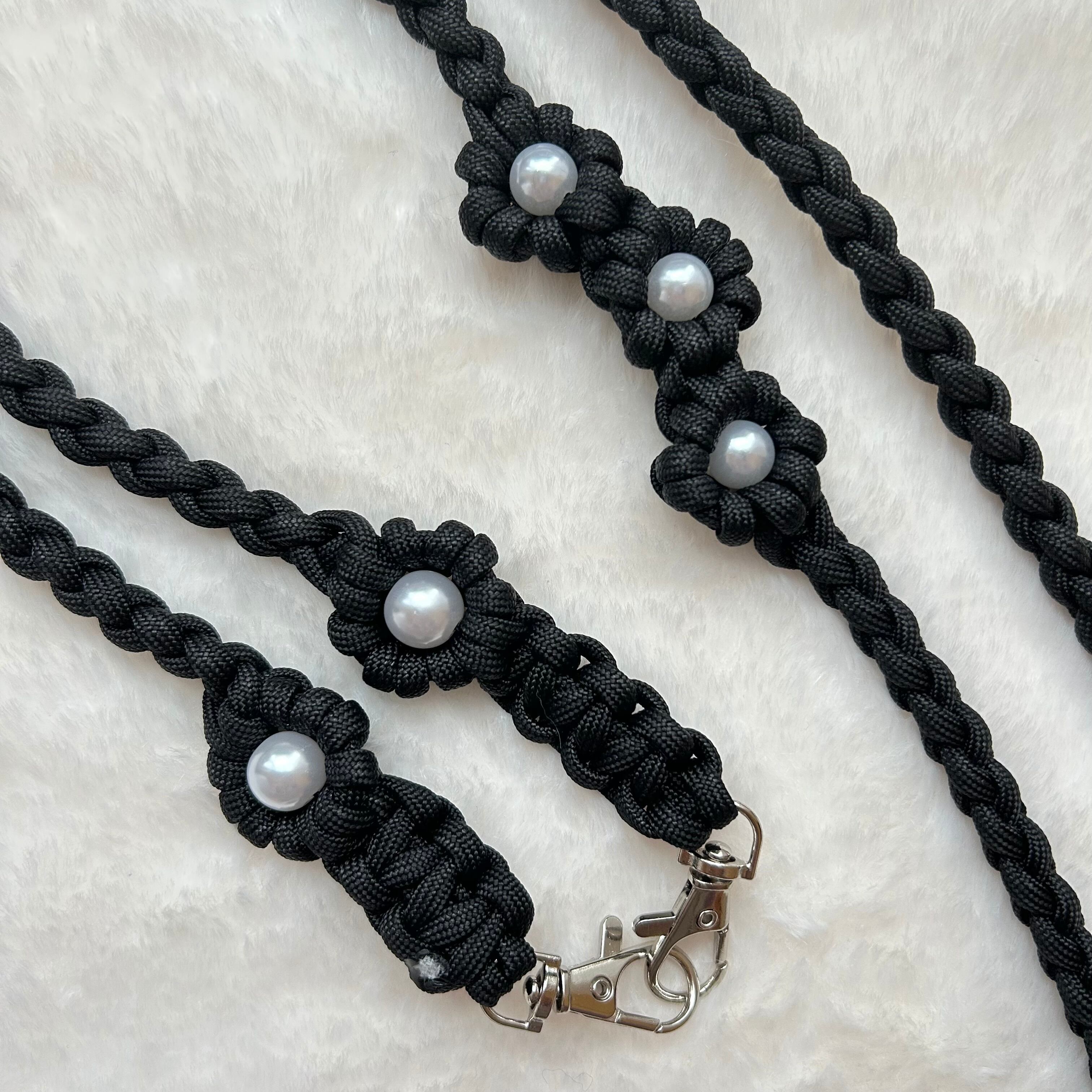・使用しているワックスコード、パラコードは焼き止め処理を行っている為、焼き跡が残っております。できる限り目立たないようにしておりますが、マクラメ編みの特性としてご理解いただきますよう、お願いいたします。