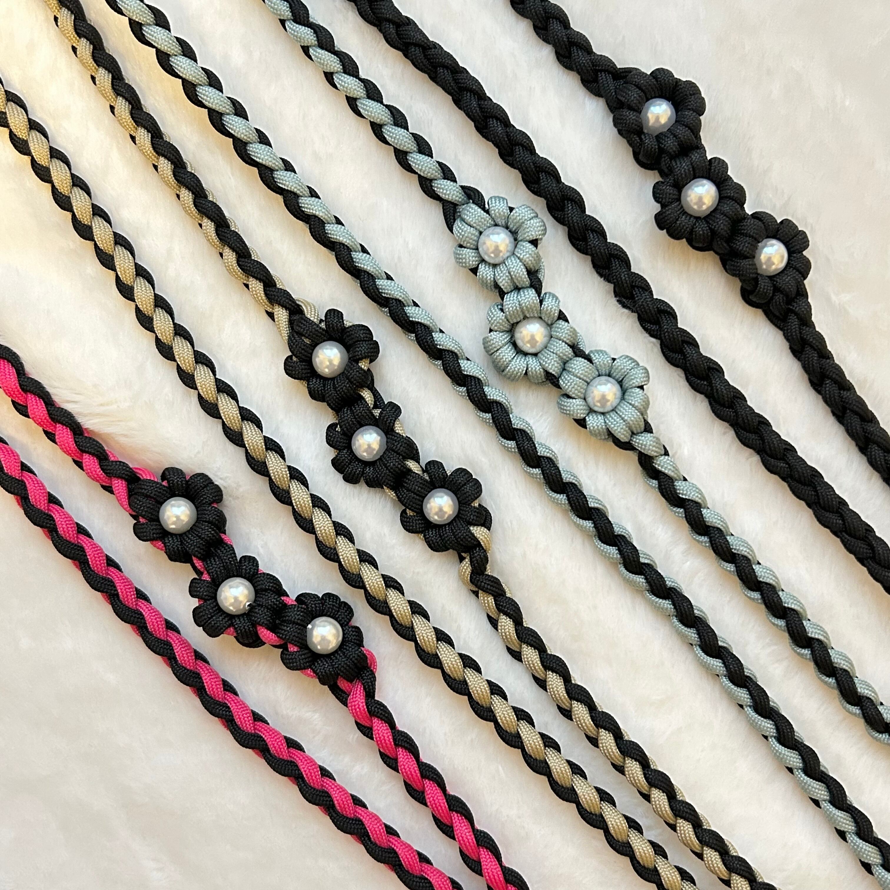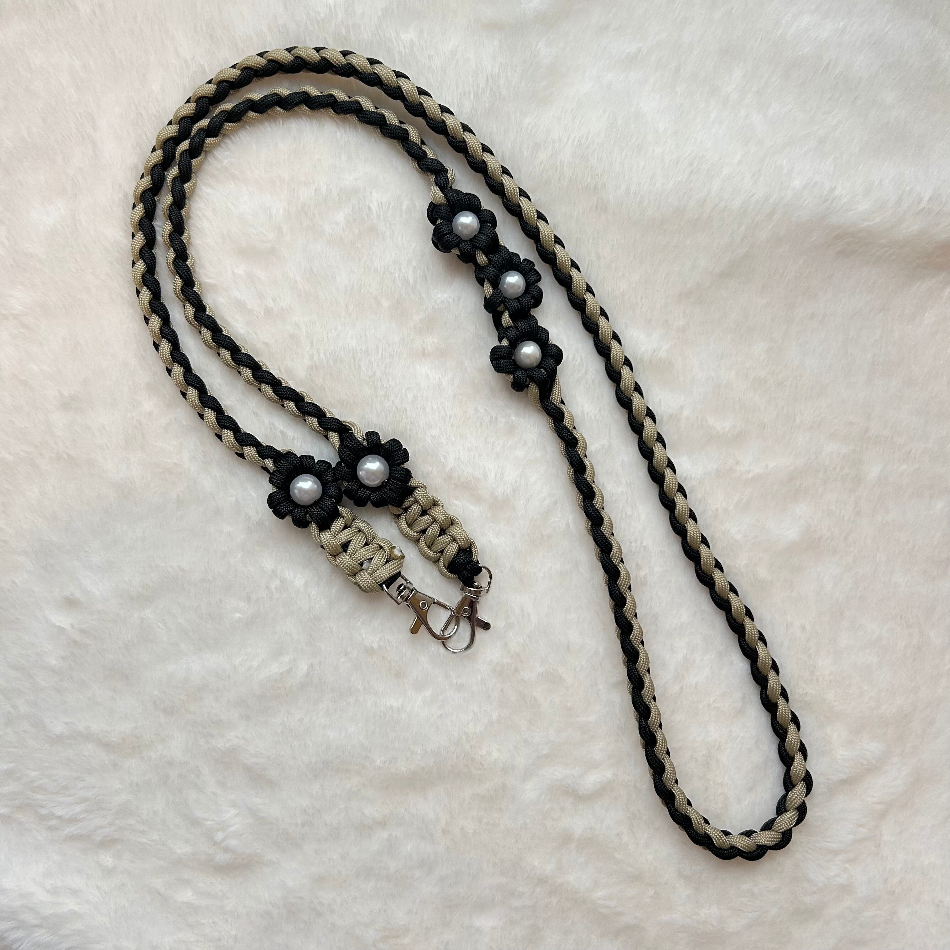 ・使用しているワックスコード、パラコードは焼き止め処理を行っている為、焼き跡が残っております。できる限り目立たないようにしておりますが、マクラメ編みの特性としてご理解いただきますよう、お願いいたします。