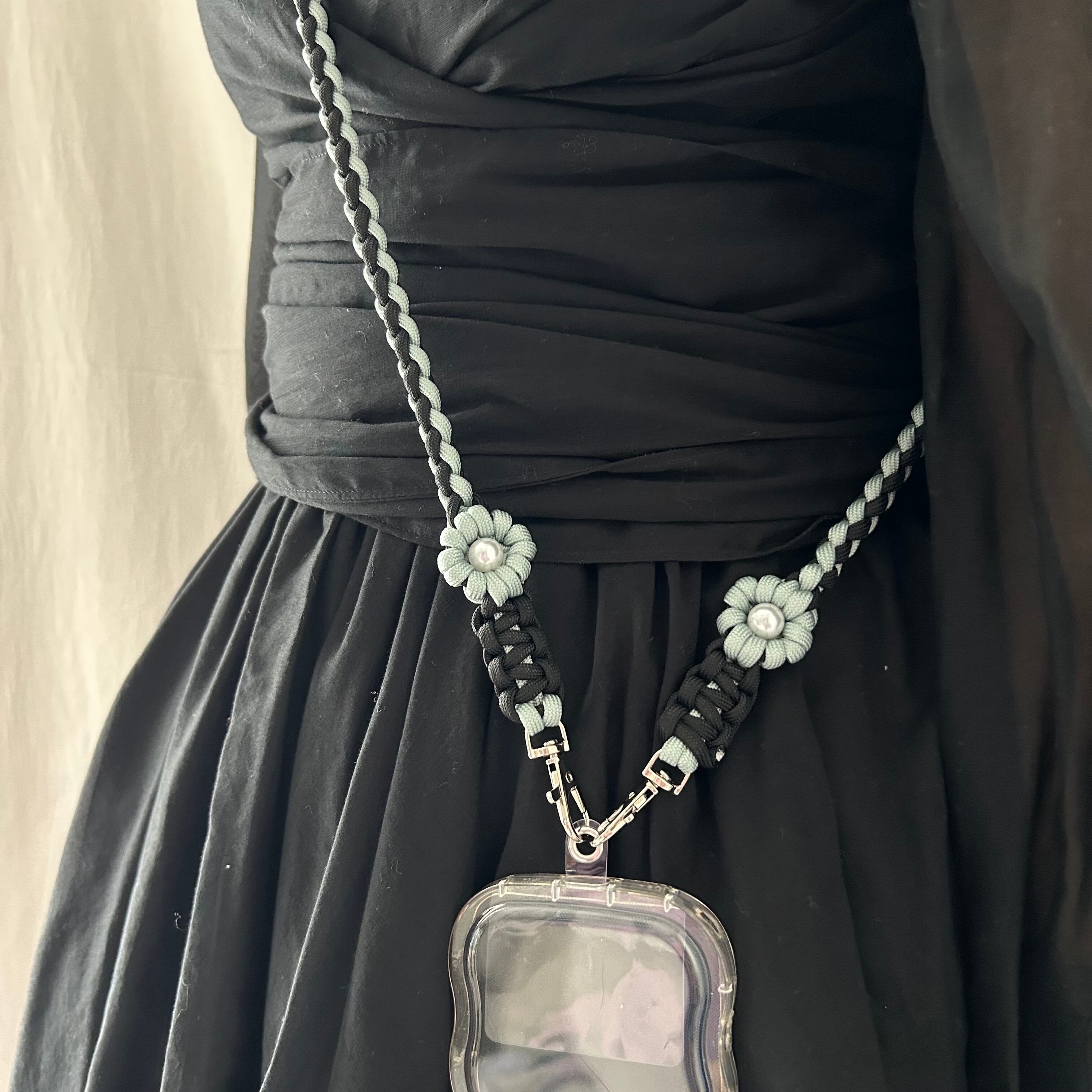2色のパラコードで編んだスマホショルダーです。
