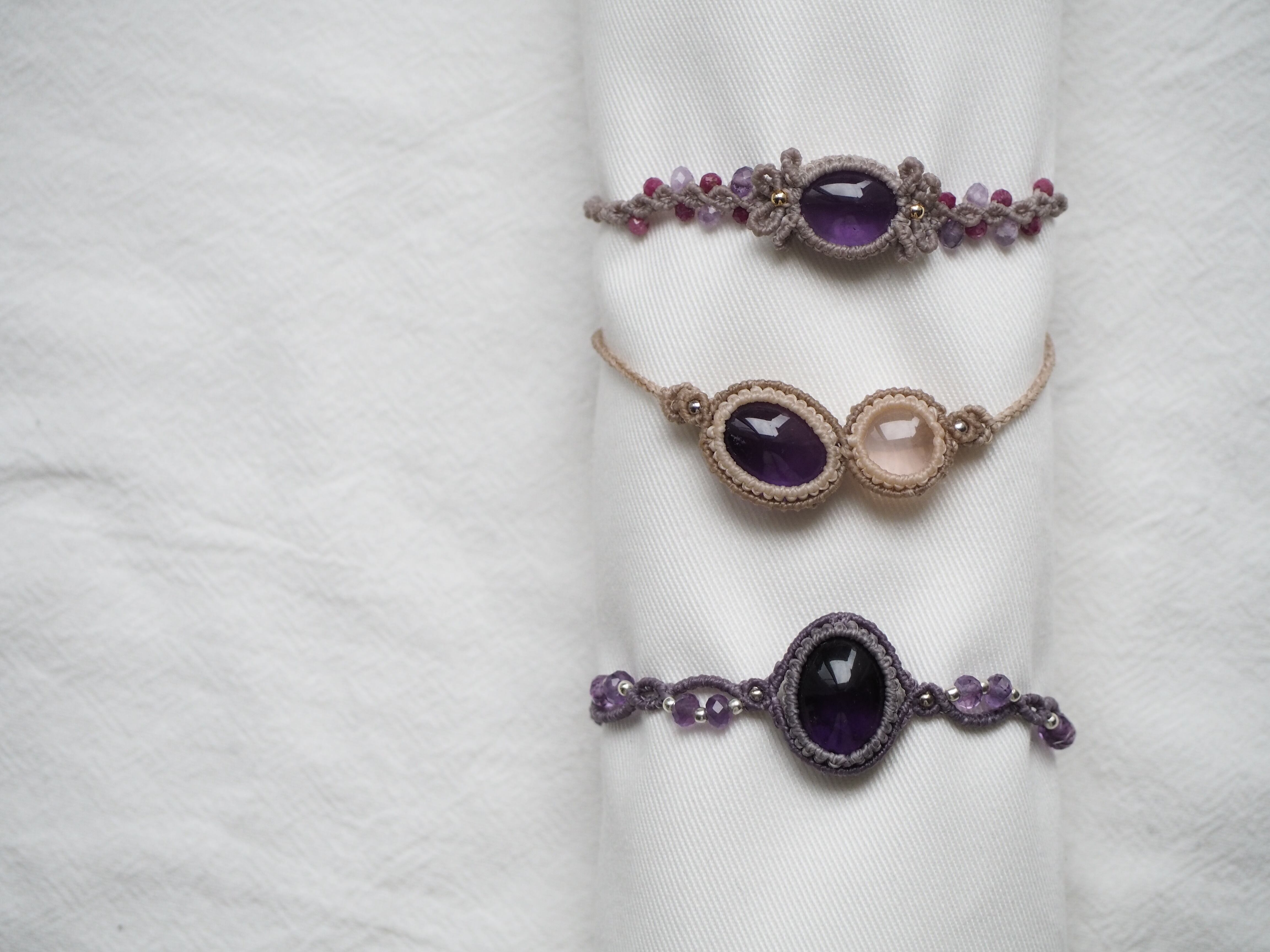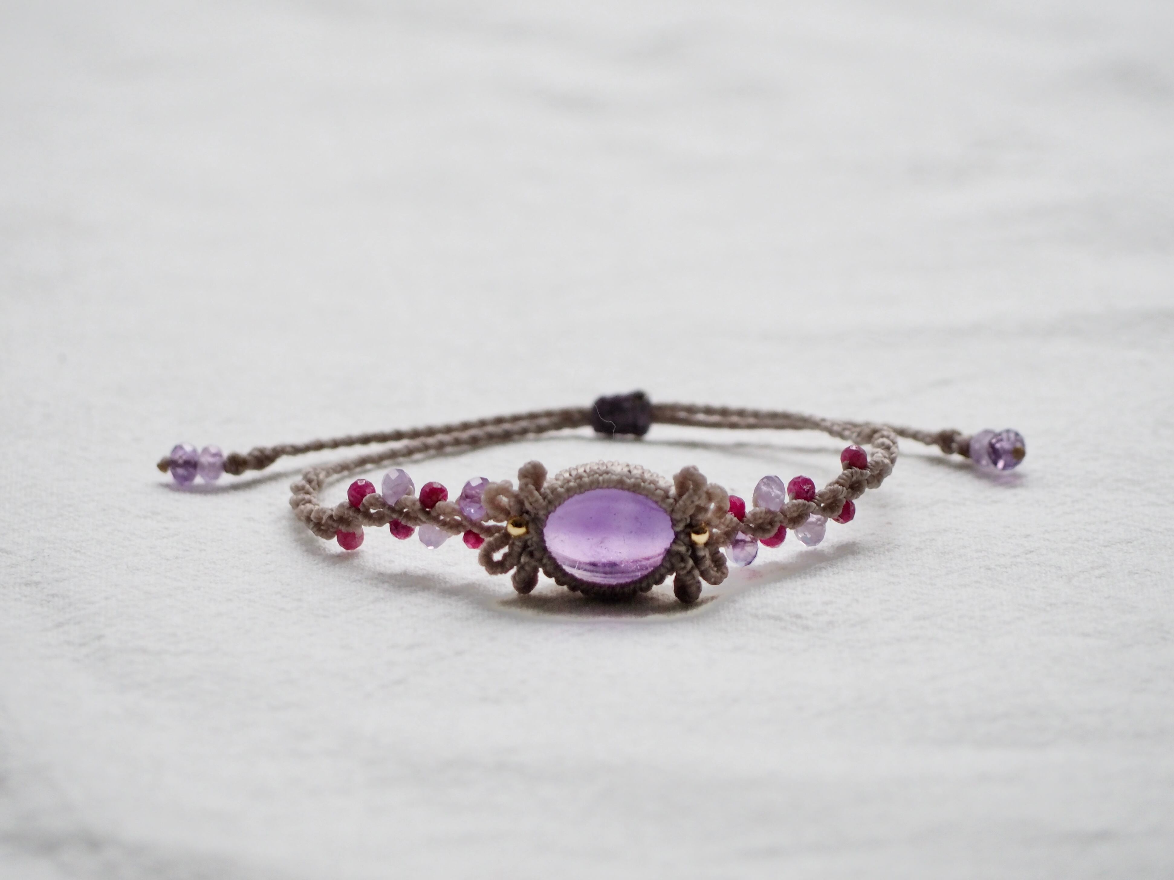 アメジスト マクラメ編みブレスレット 【Lina】シリーズ