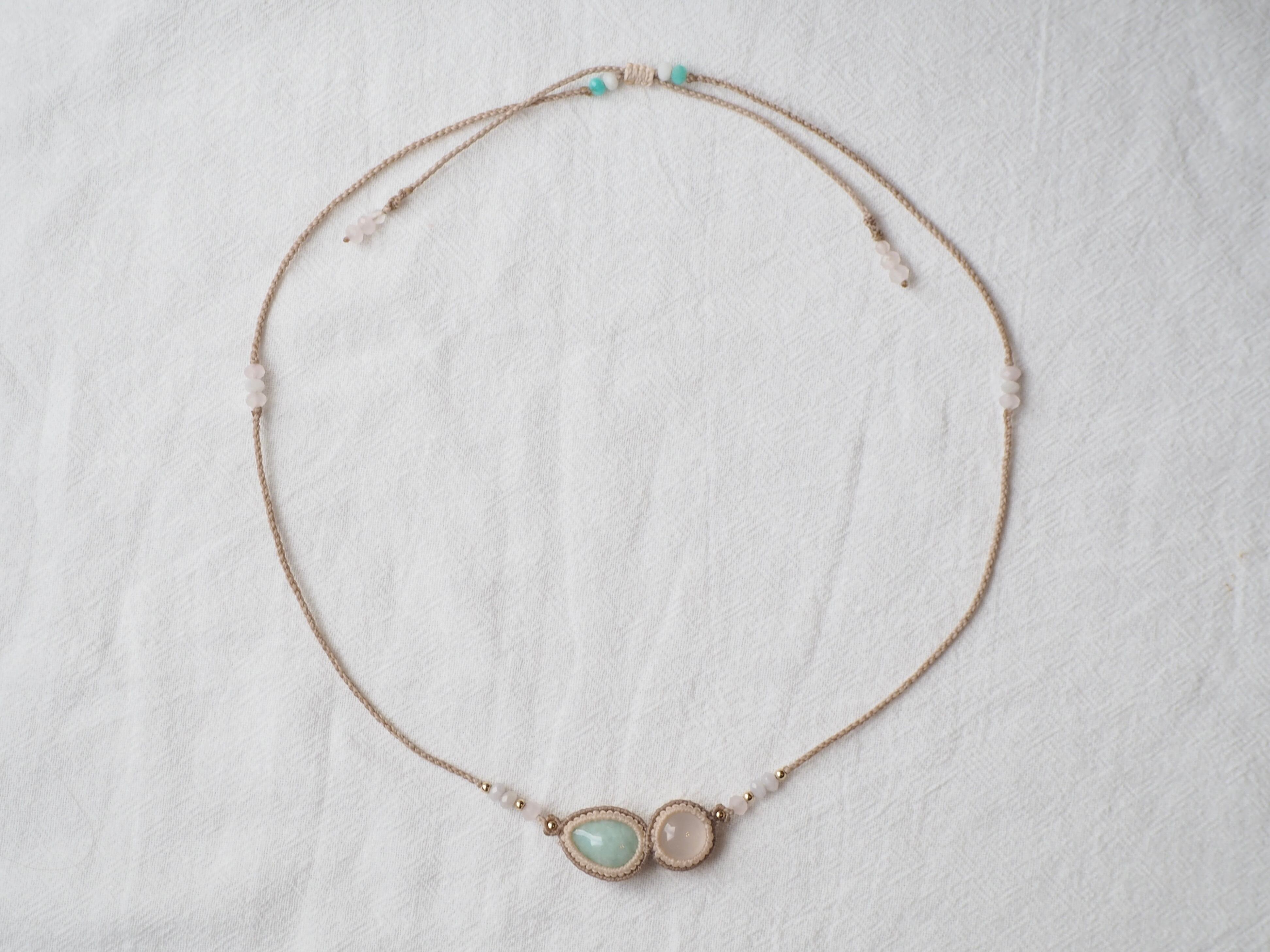 翡翠×スターローズクォーツ マクラメ編みネックレス 【Lua】シリーズ
