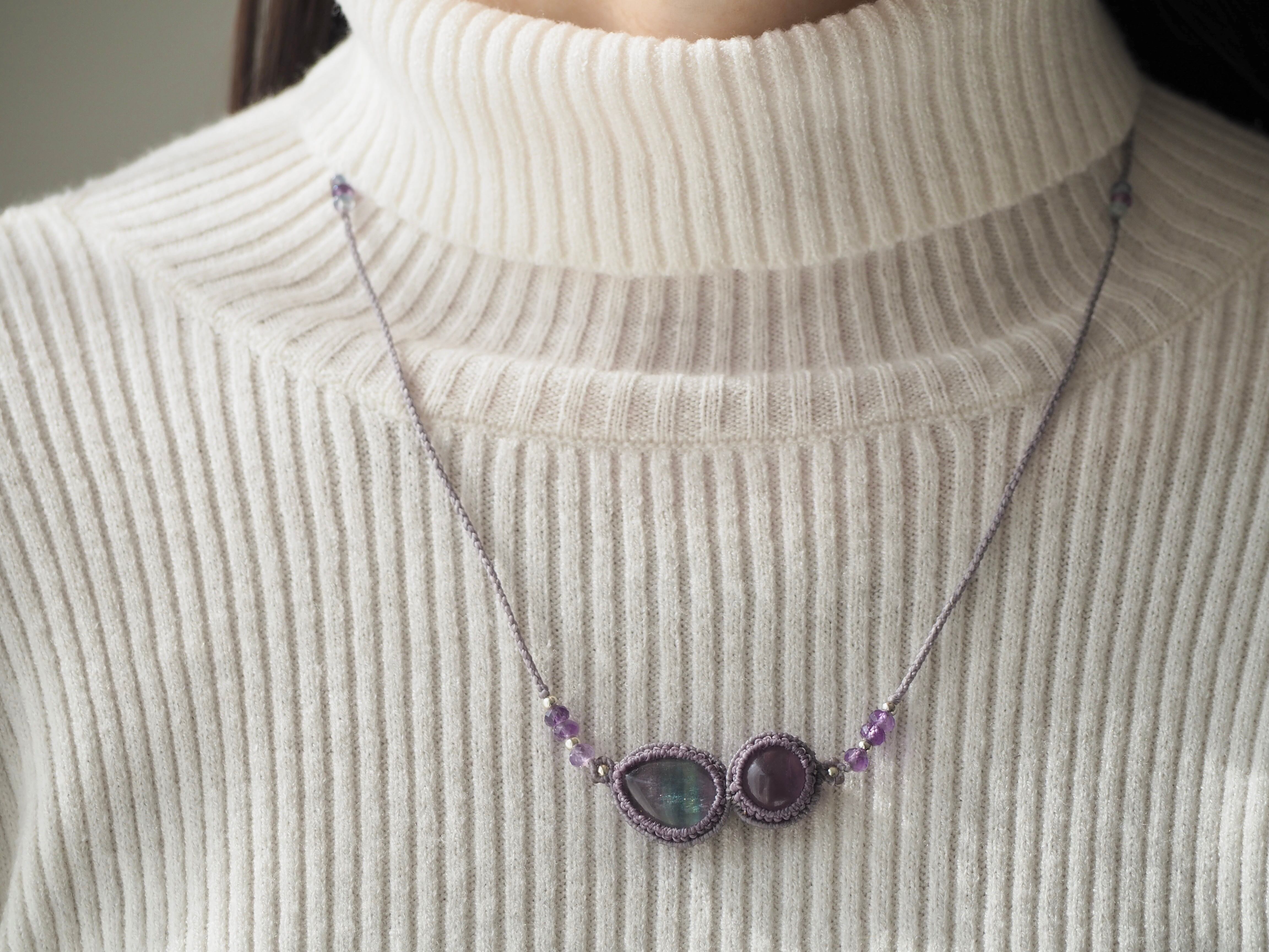 フローライト×ラベンダーアメジスト マクラメ編みネックレス 【Lua】シリーズ